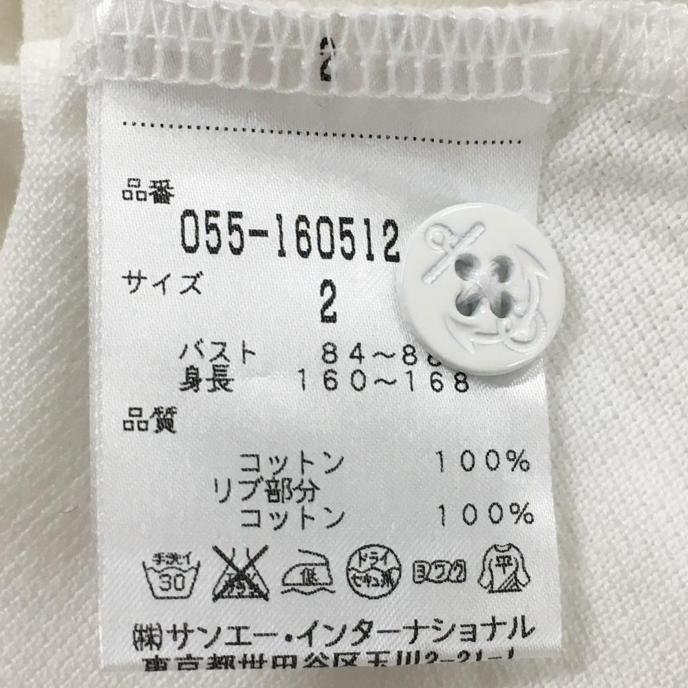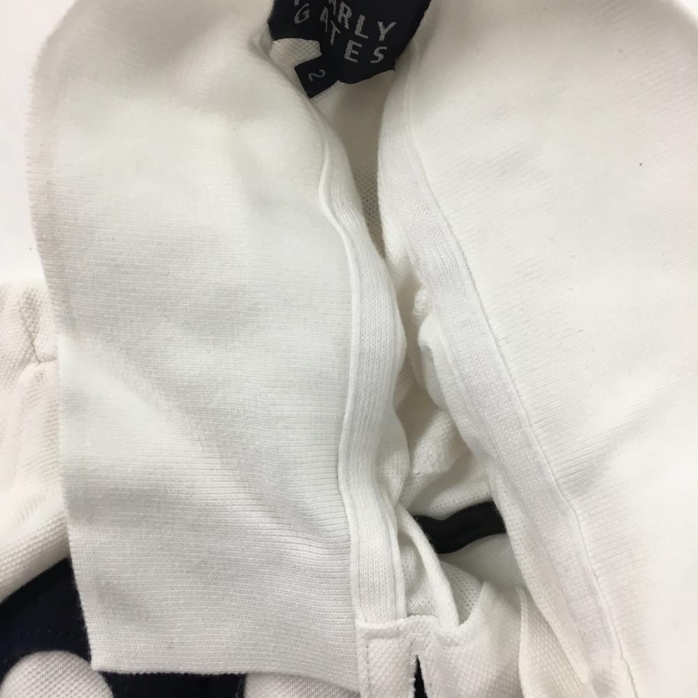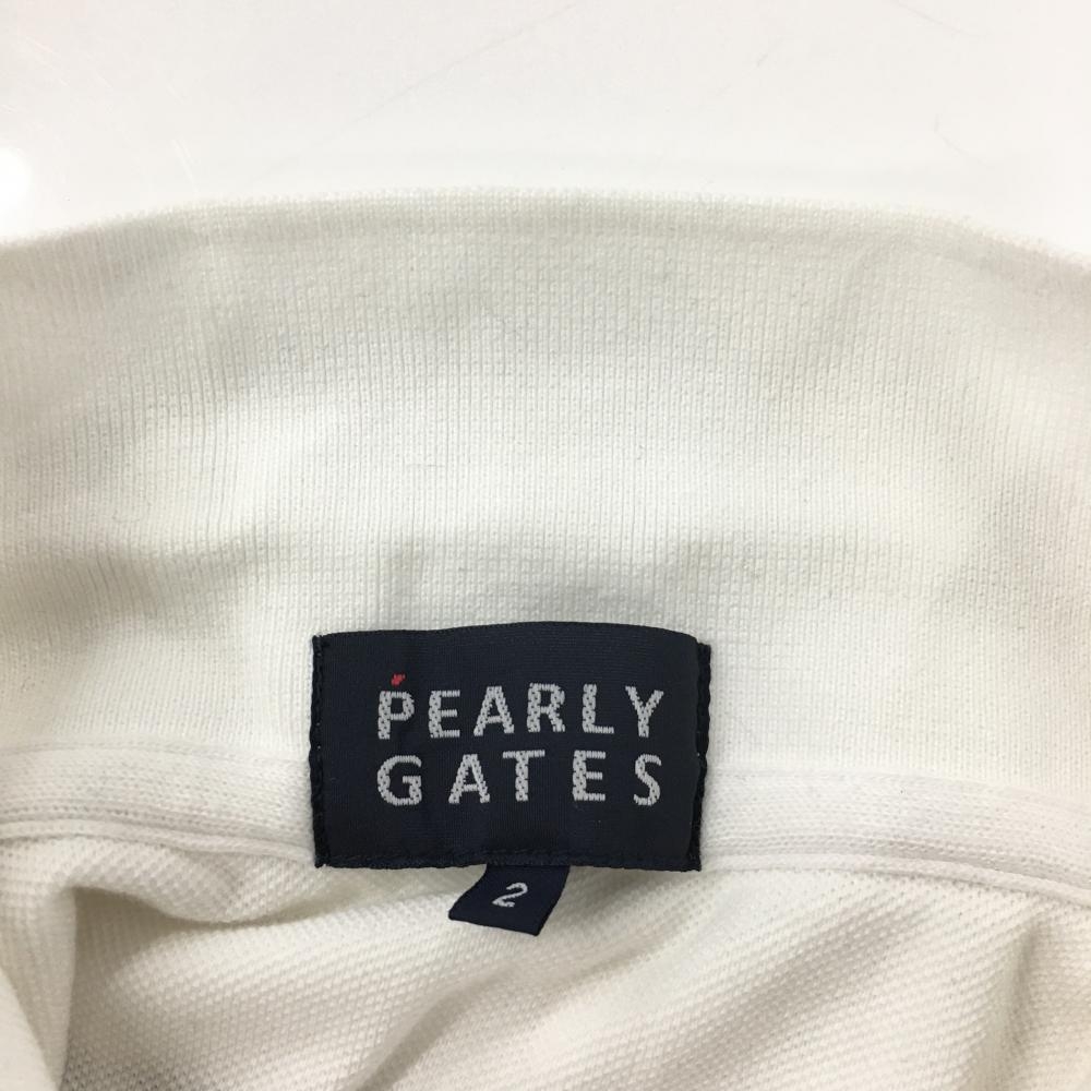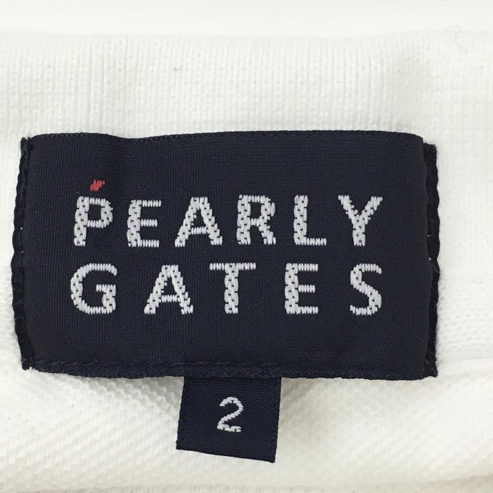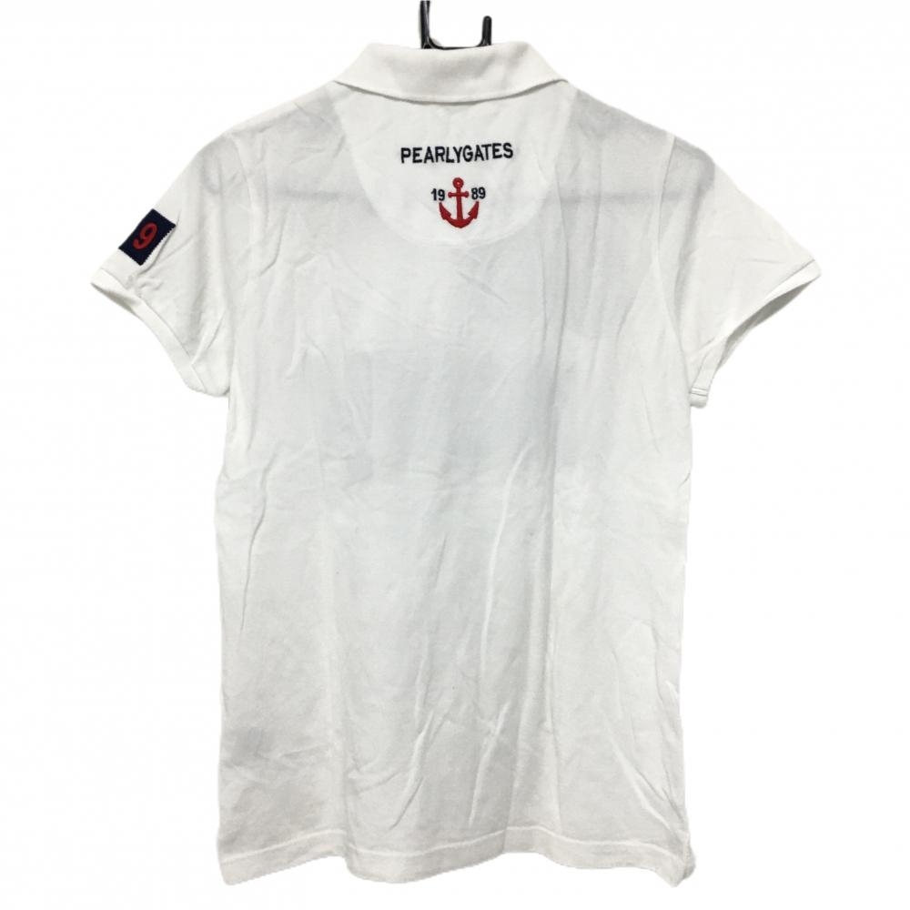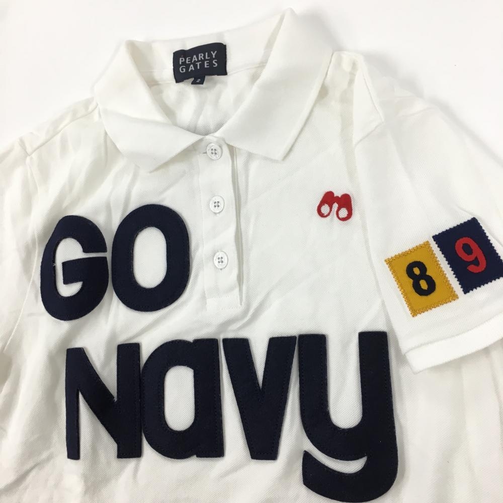 【美品】パーリーゲイツ 半袖ポロシャツ 白×ネイビー フェルトワッペン レディース 2(L) ゴルフウェア PEARLY GATES