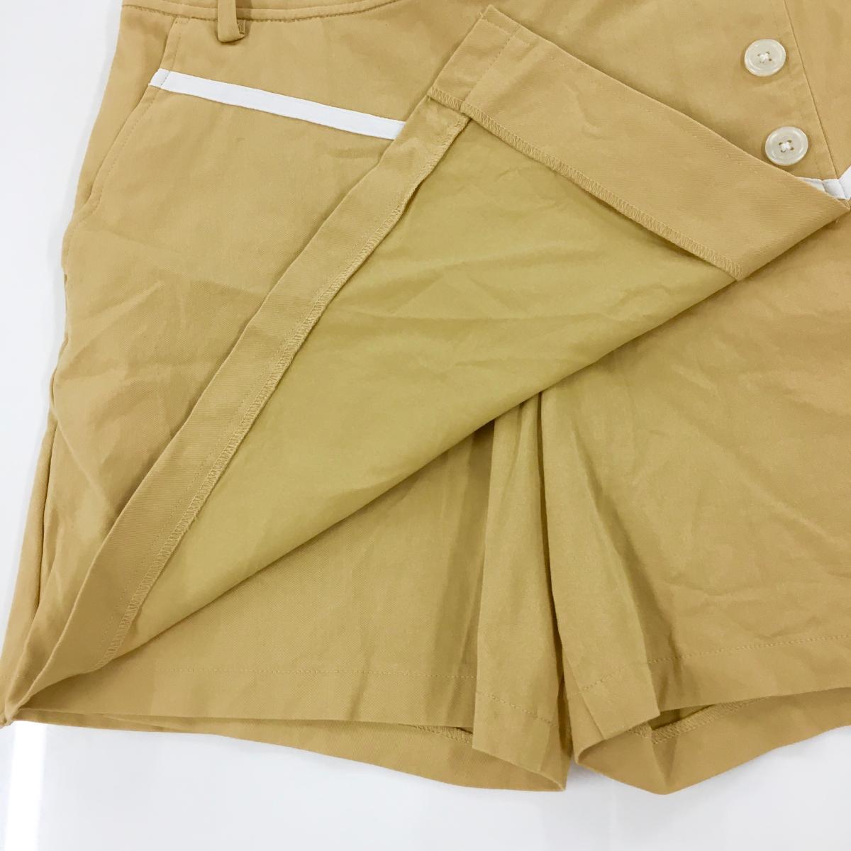 【美品】キャロウェイ スカート イエロー系 白テープライン ロゴ刺しゅう ストレッチ レディース L ゴルフウェア Callaway