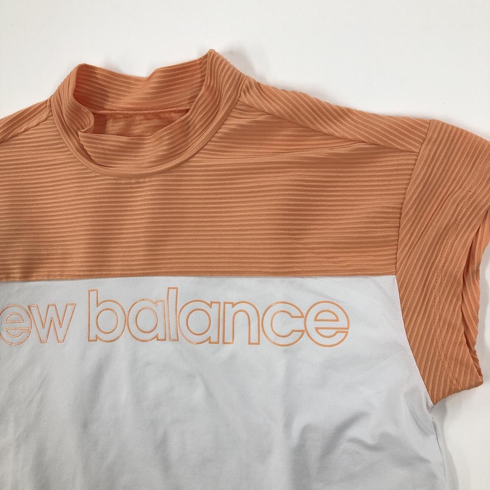【超美品】ニューバランスゴルフ 半袖ハイネックシャツ 白×オレンジ フロントロゴ レディース 1(M) ゴルフウェア New Balance