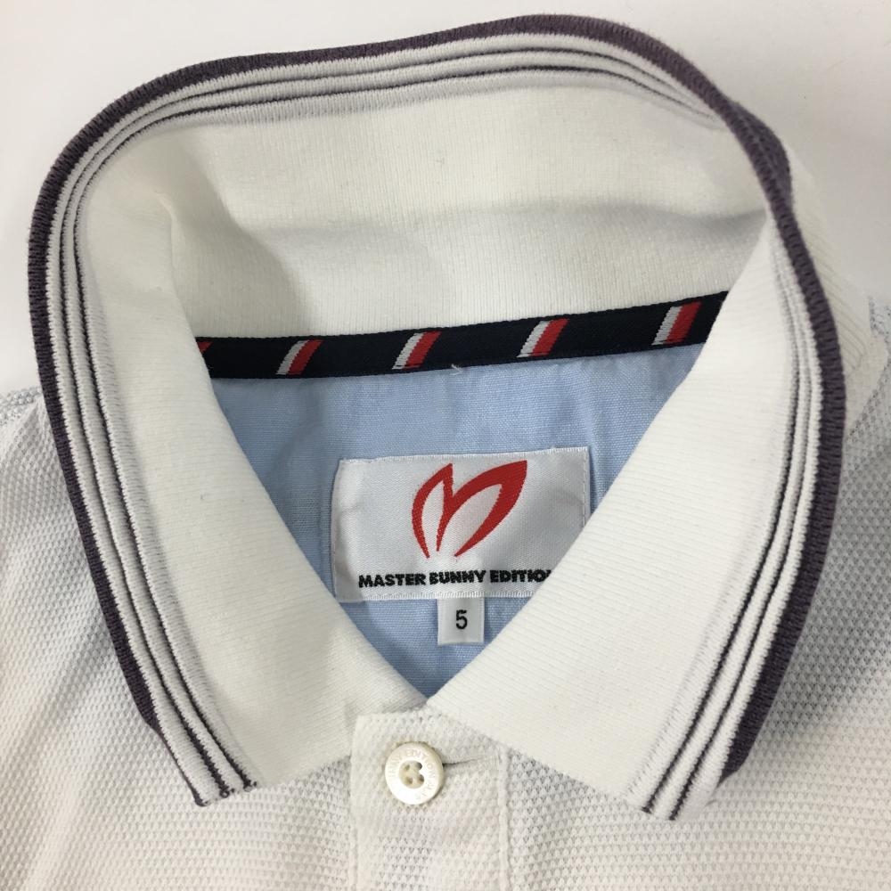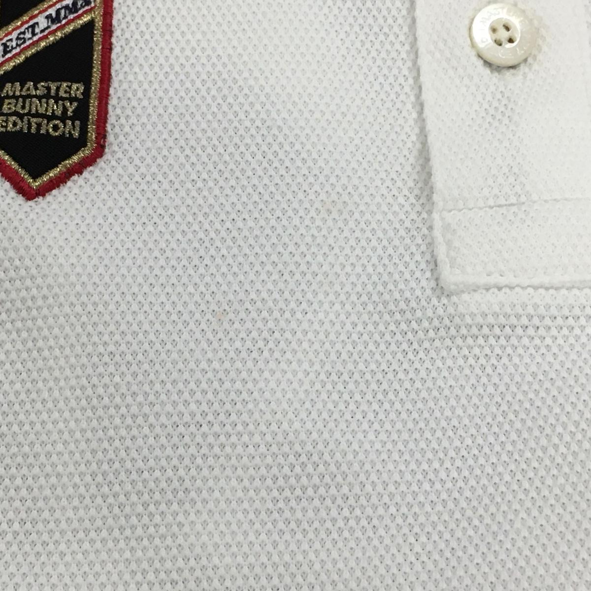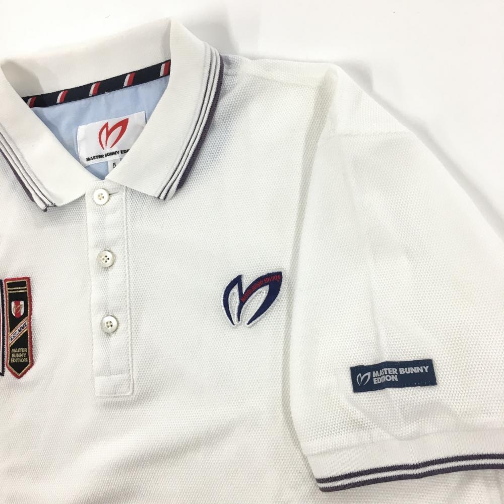 マスターバニー 半袖ポロシャツ 白×ネイビー 襟袖口ライン ワッペン メンズ 5(L) ゴルフウェア MASTER BUNNY EDITION