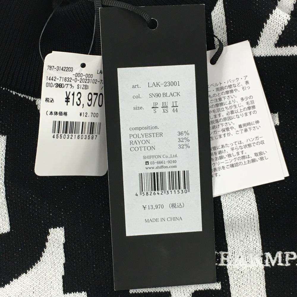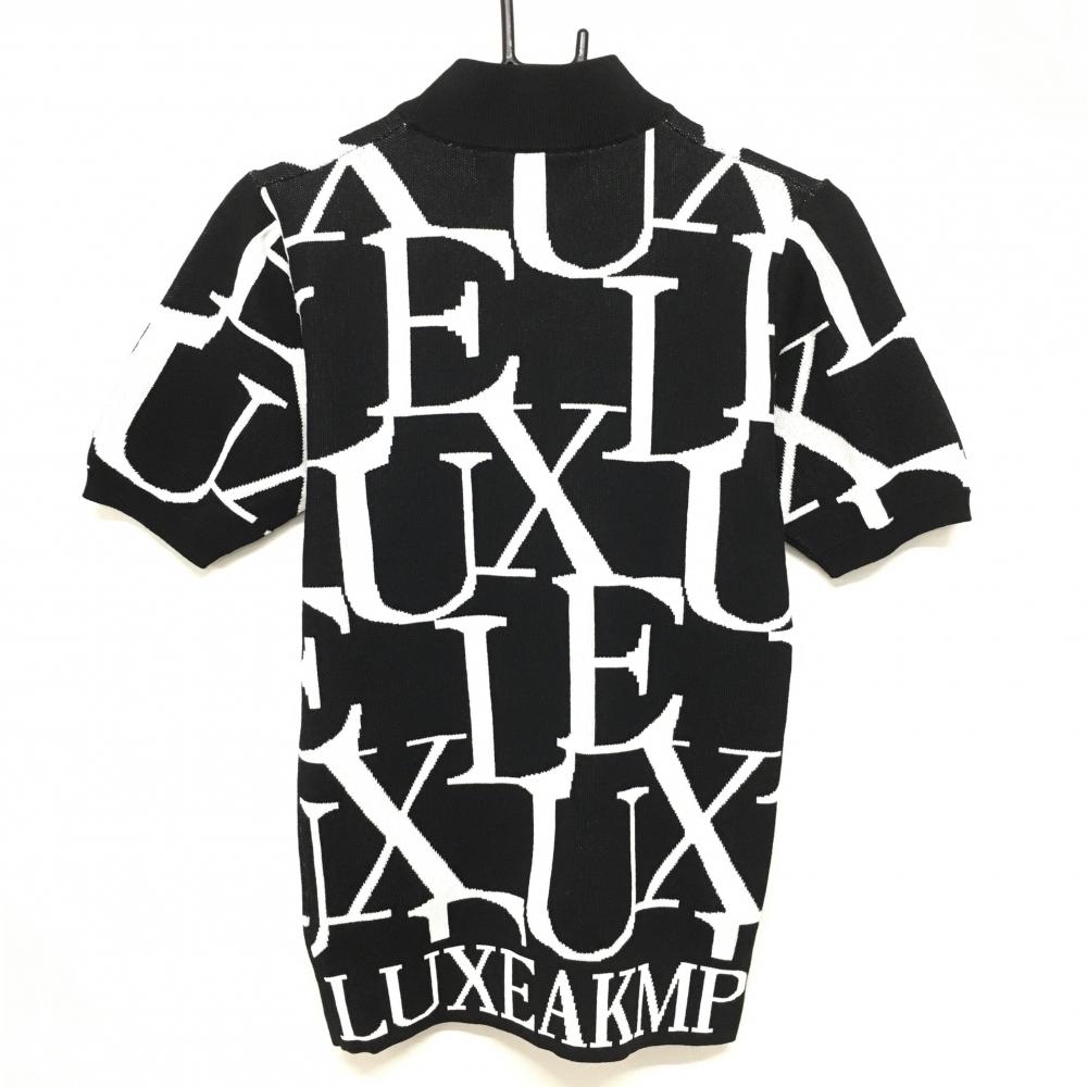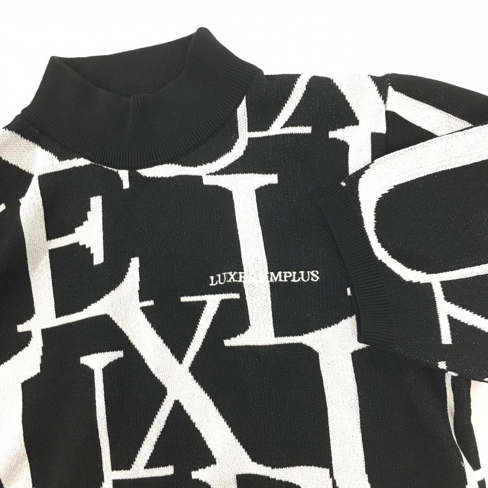 【新品】リュクスエイケイエムプラス 半袖ハイネックセーター 黒×白 英字総柄 メンズ S ゴルフウェア 2023年モデル LUXEAKMPLUS