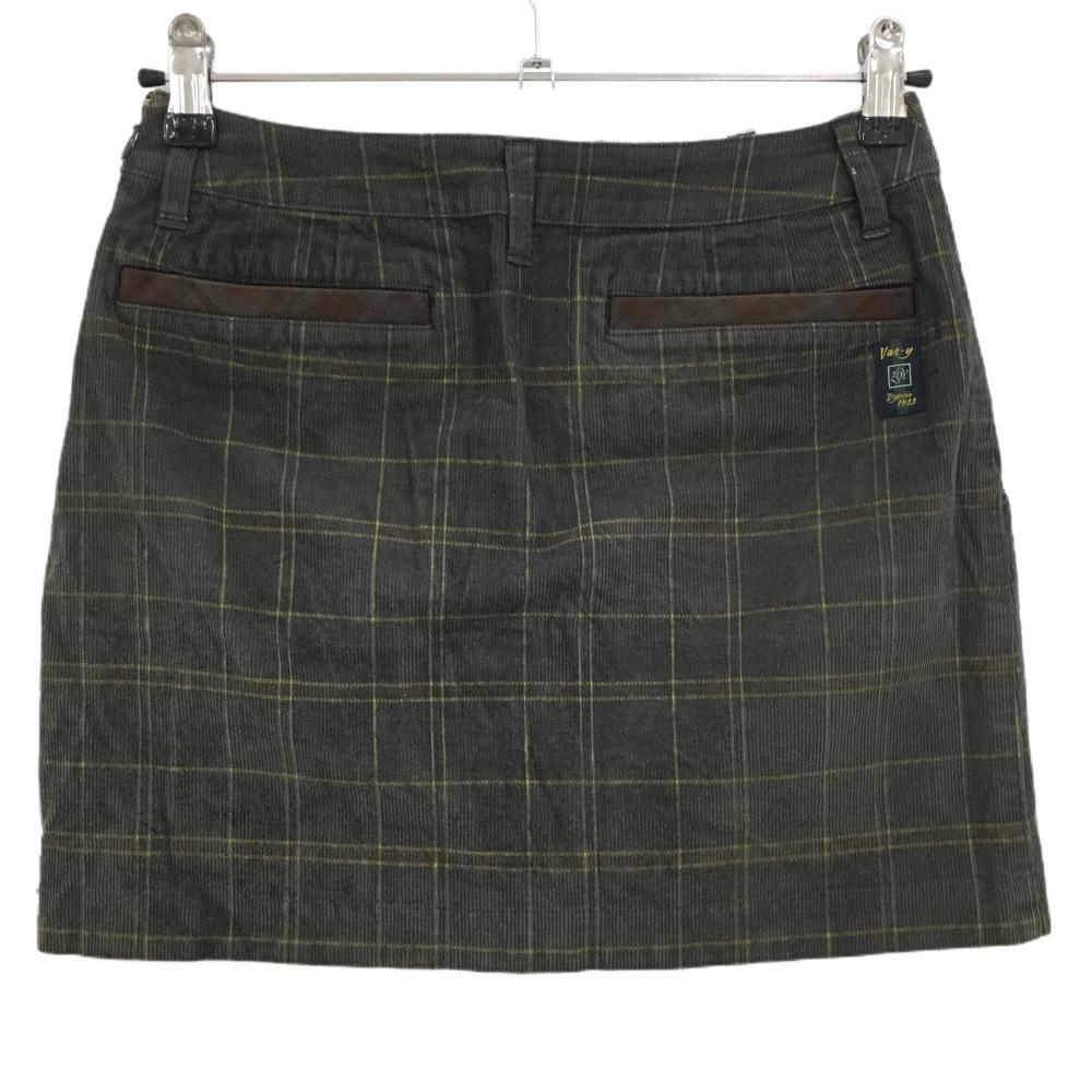 ゾーイ コーデュロイスカート ダークグリーン×イエロー チェック ストレッチ レディース 36(S) ゴルフウェア ZOY