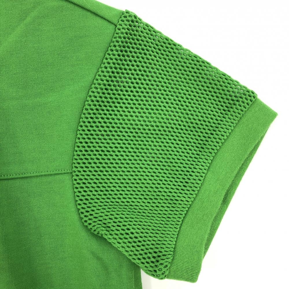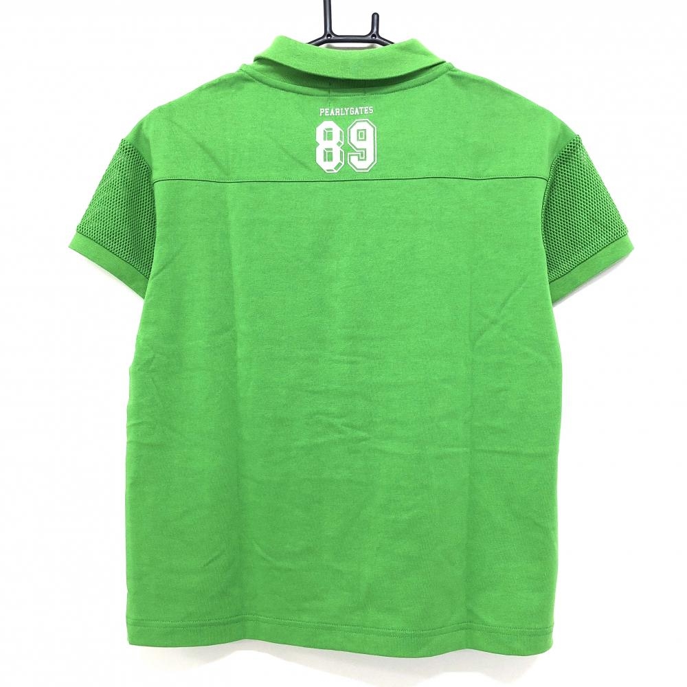 【超美品】パーリーゲイツ 襟付き半袖シャツ グリーン×白 フロントロゴ 袖メッシュ レディース 0(S) ゴルフウェア PEARLY GATES