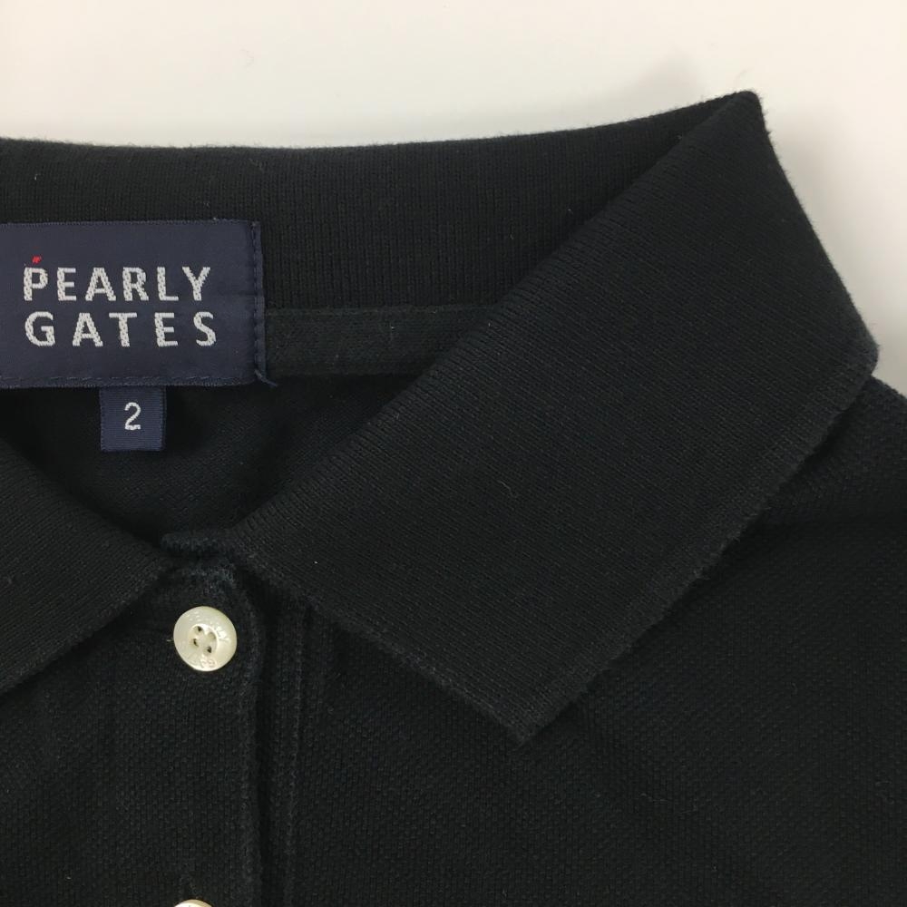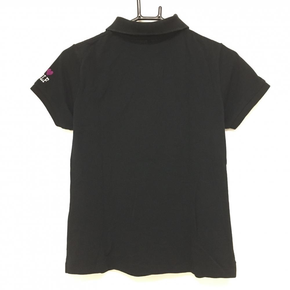 【美品】パーリーゲイツ 半袖ポロシャツ 黒 ロゴパープル フライングラビット レディース 2(L) ゴルフウェア PEARLY GATES