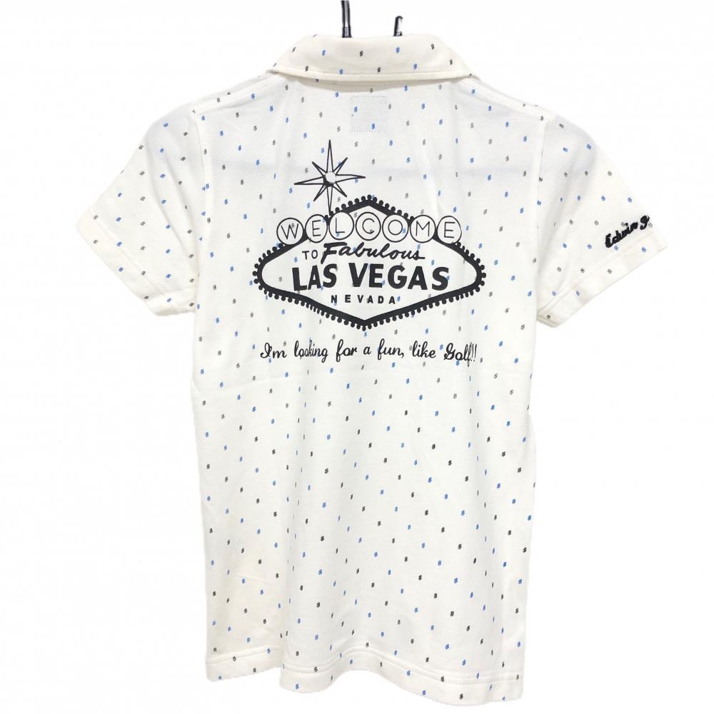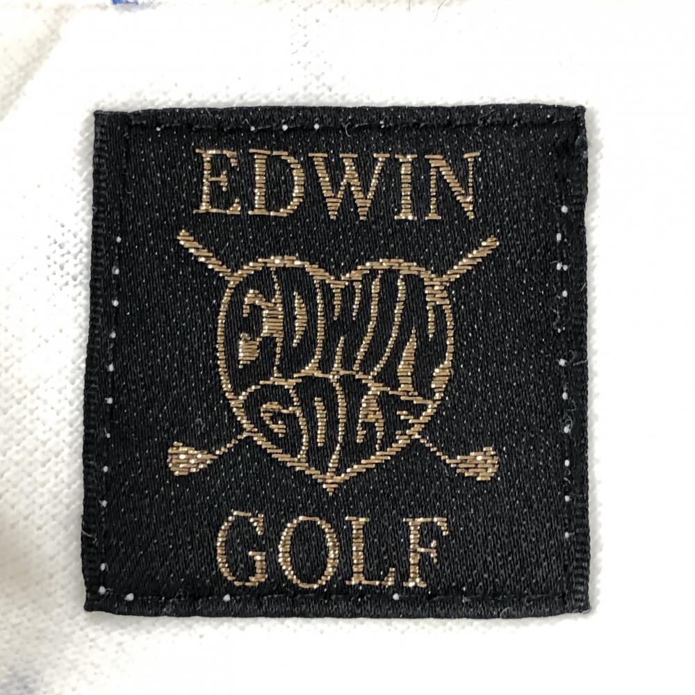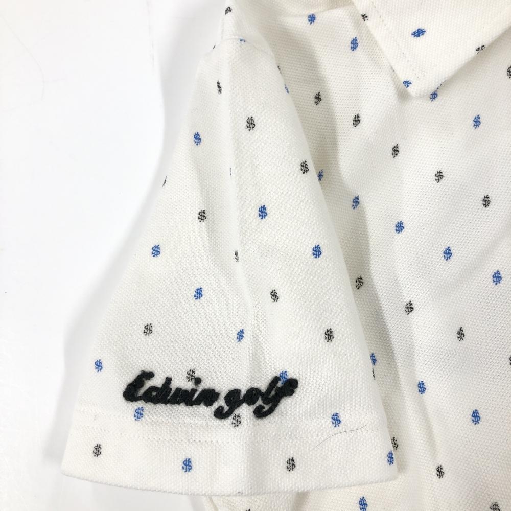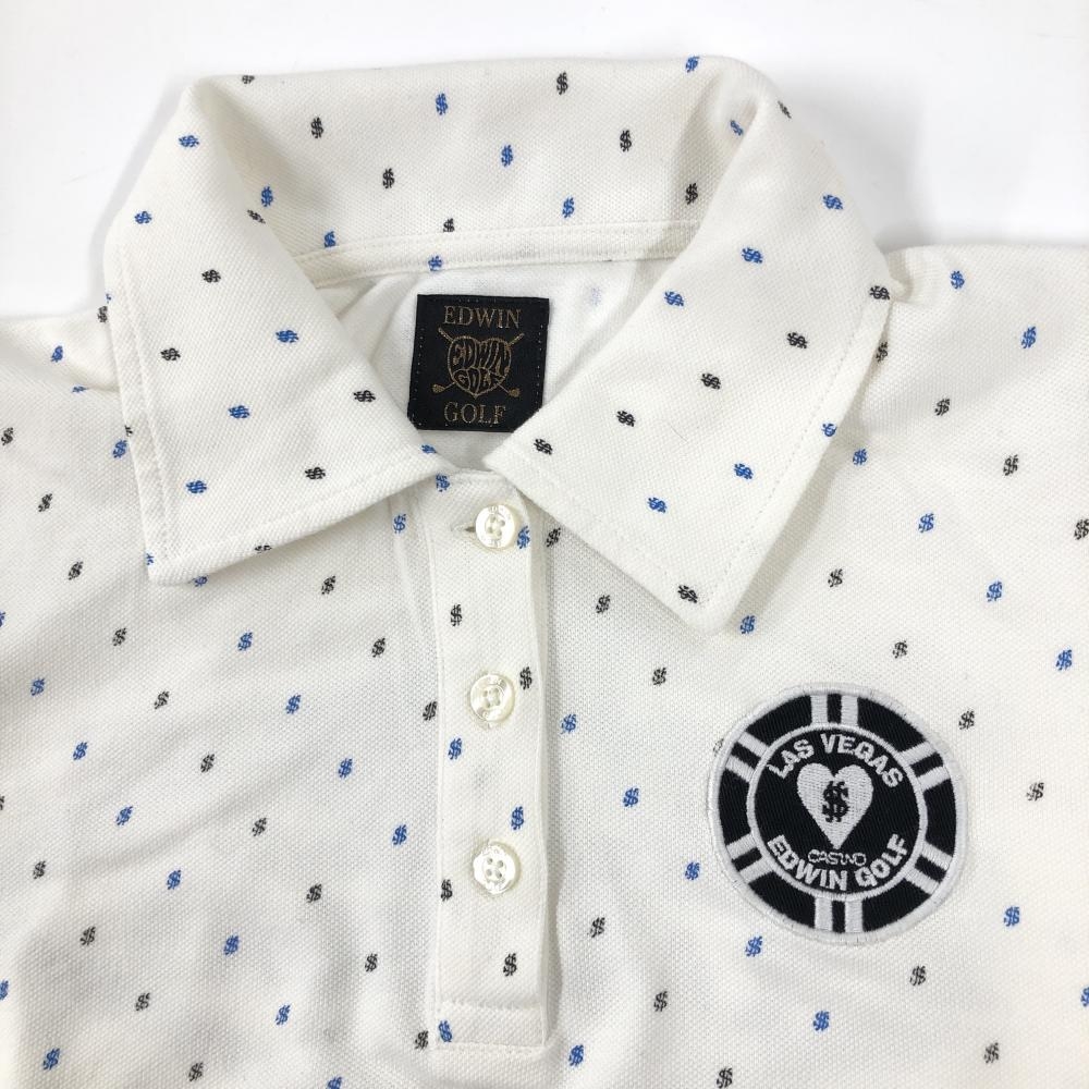 【美品】エドウィンゴルフ 半袖ポロシャツ 白×ブルー×黒 総柄 レディース S ゴルフウェア EDWIN GOLF