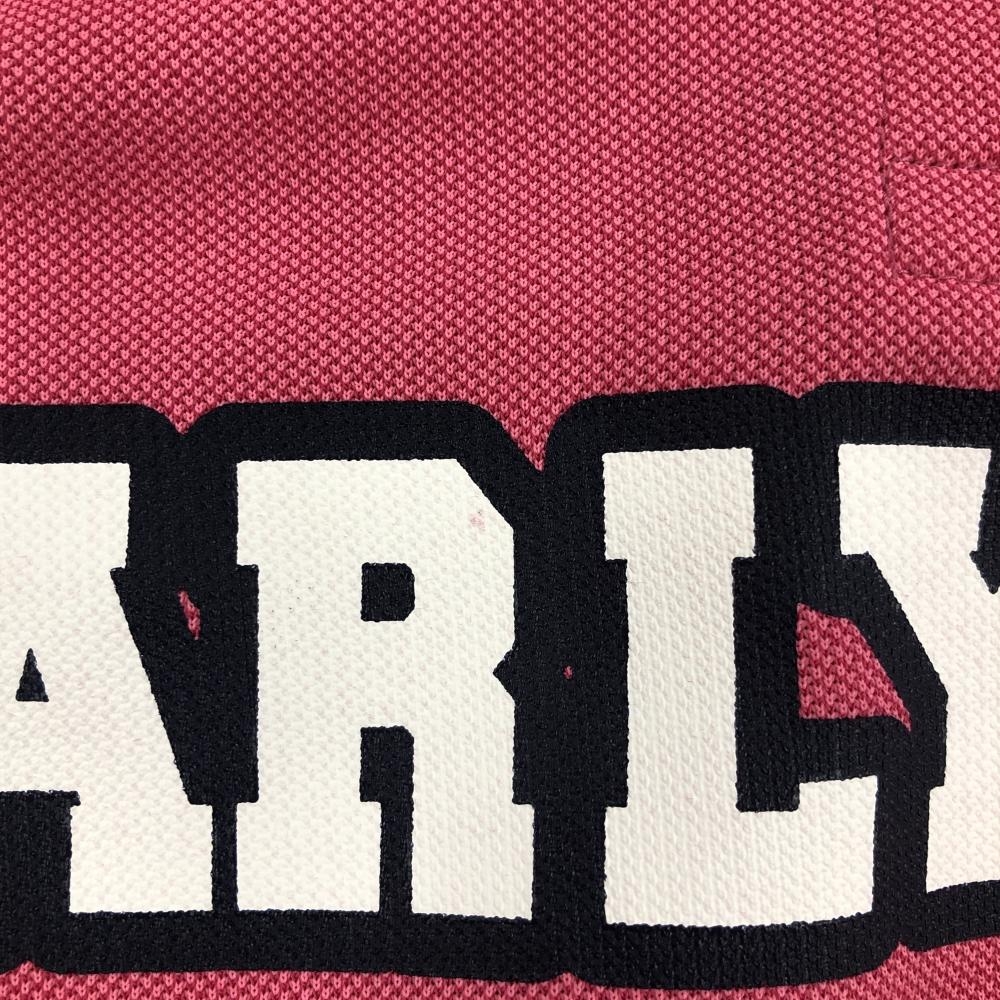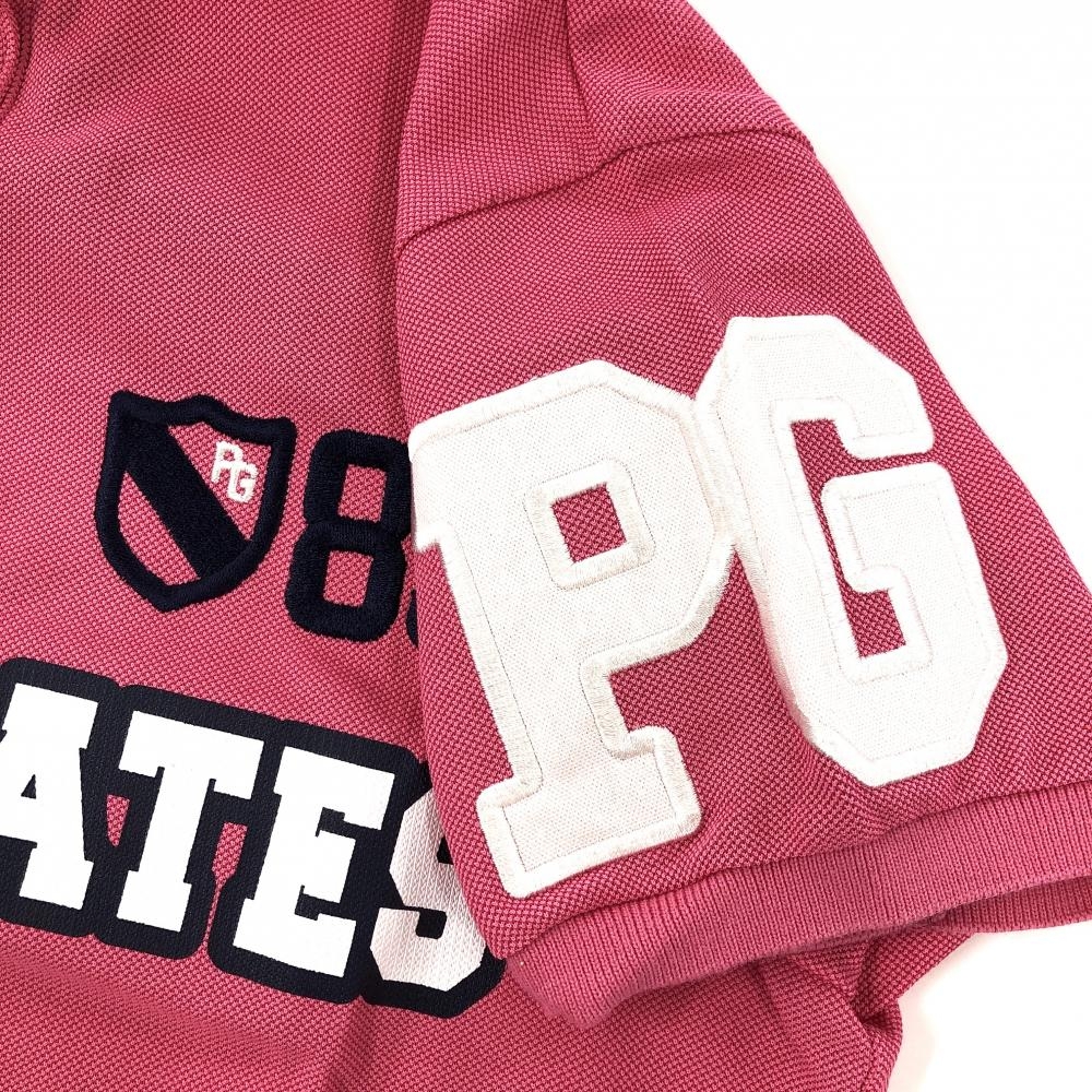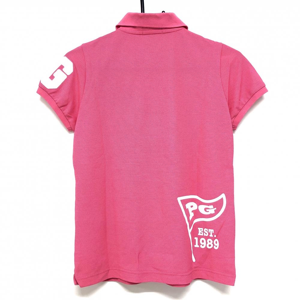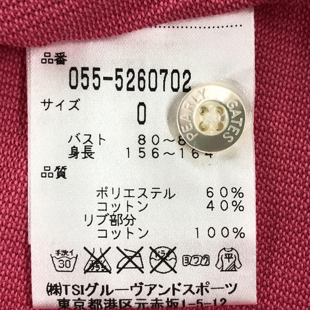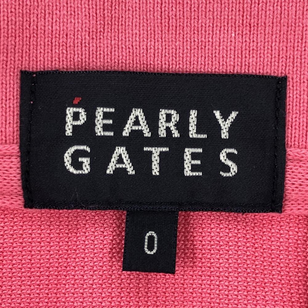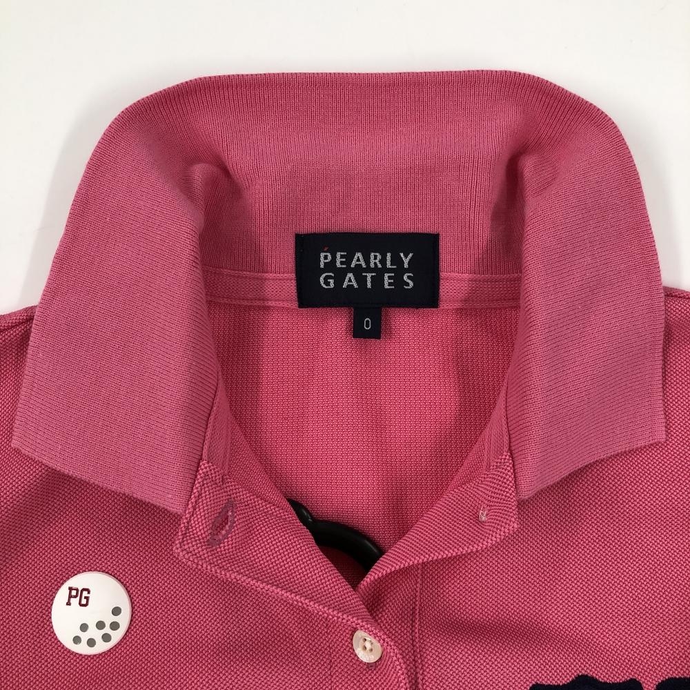 【美品】パーリーゲイツ 半袖ポロシャツ ピンク×ネイビー×白 フロントロゴプリント レディース 0(S) ゴルフウェア PEARLY GATES