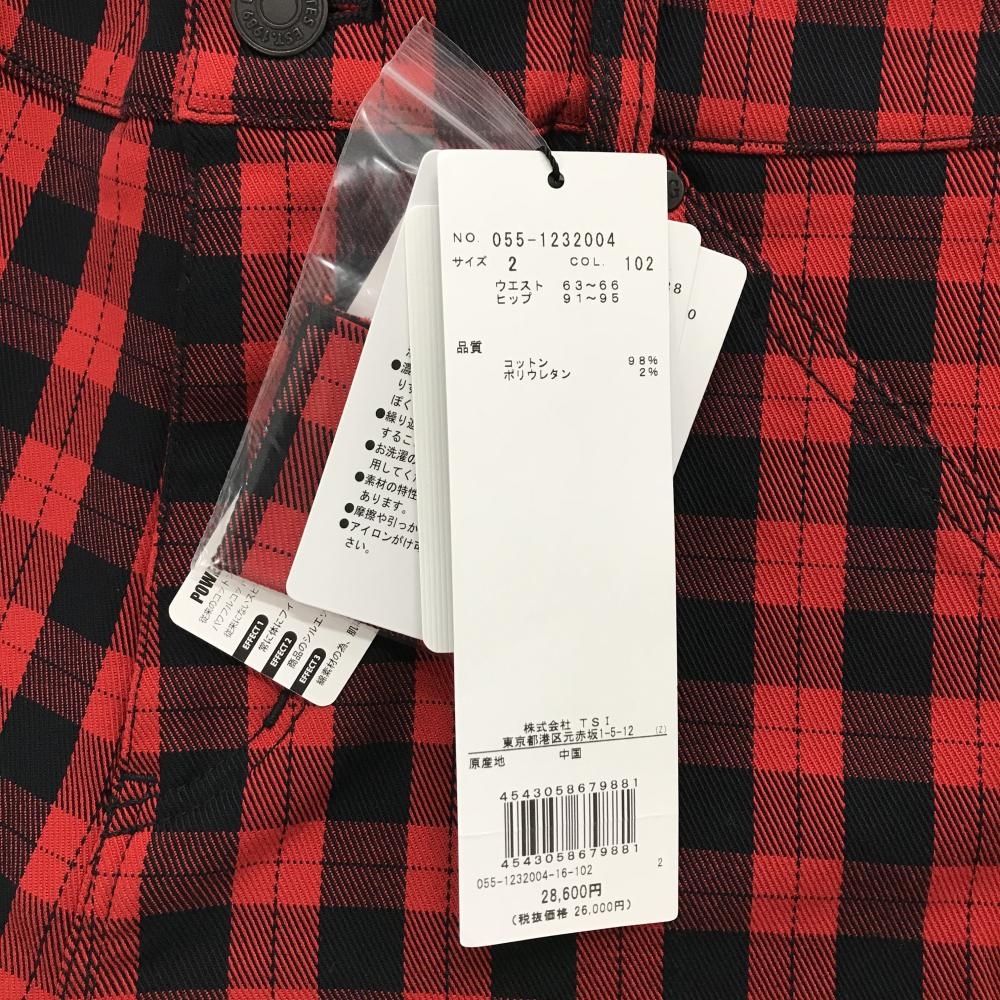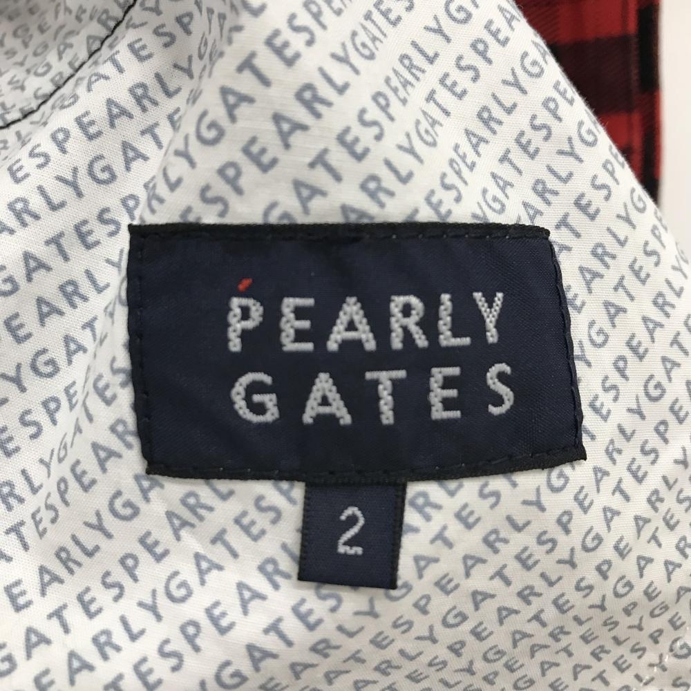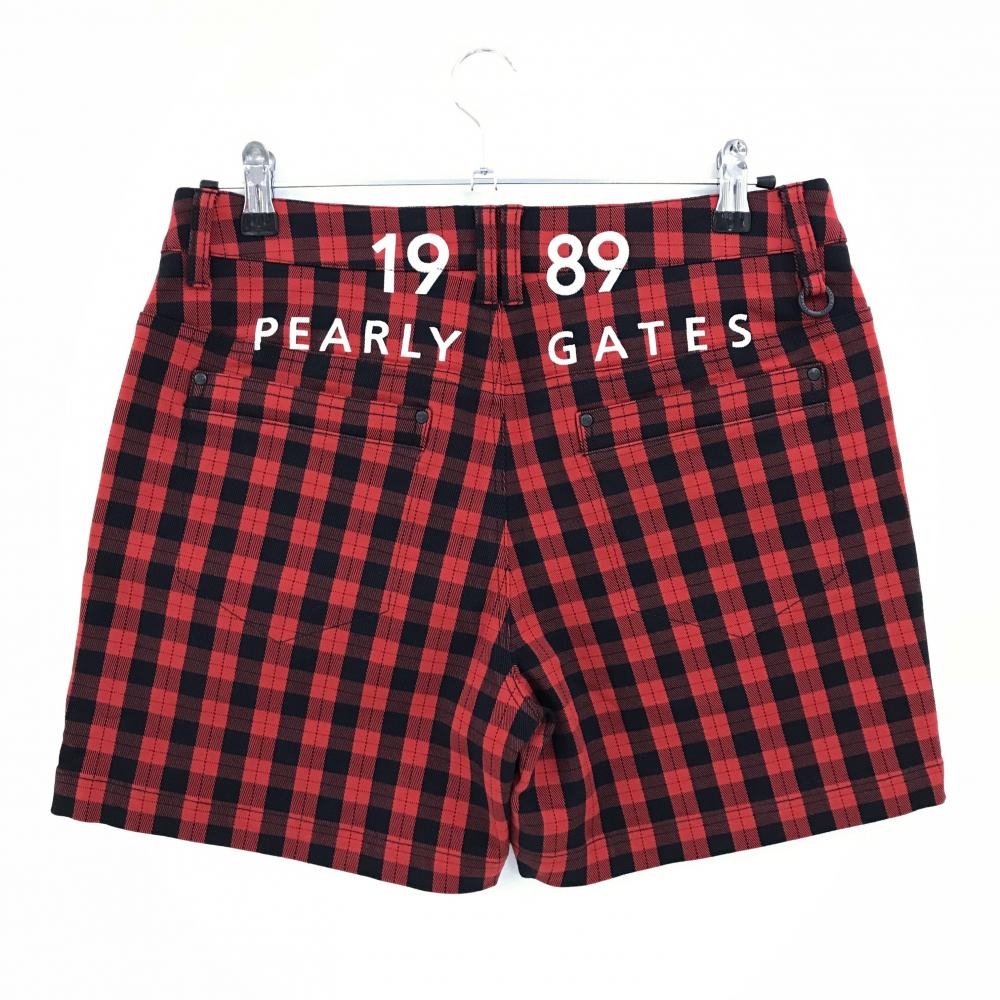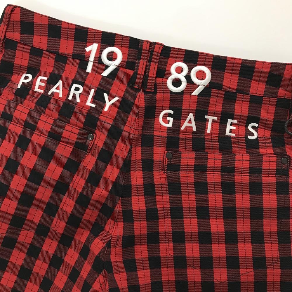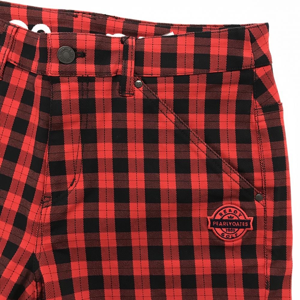 【新品】パーリーゲイツ ショートパンツ レッド×ダークネイビー チェック柄 ロゴ白 レディース 2(L) ゴルフウェア PEARLY GATES