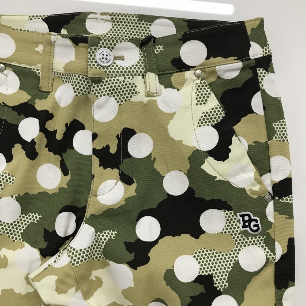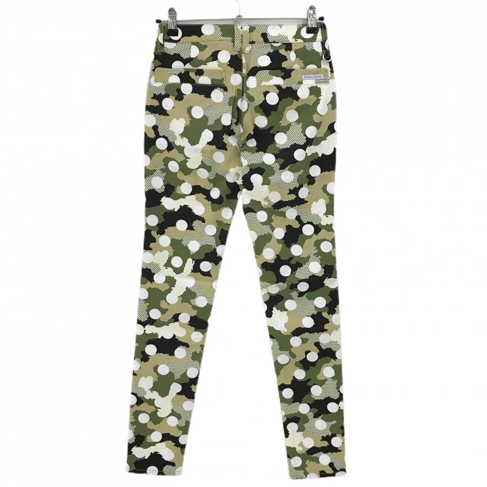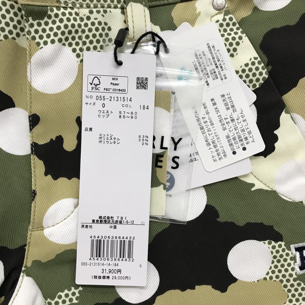 【新品】パーリーゲイツ パンツ カーキ×白 カモフラ調 迷彩 ドット ロゴ刺しゅう レディース 0(S) ゴルフウェア PEARLY GATES