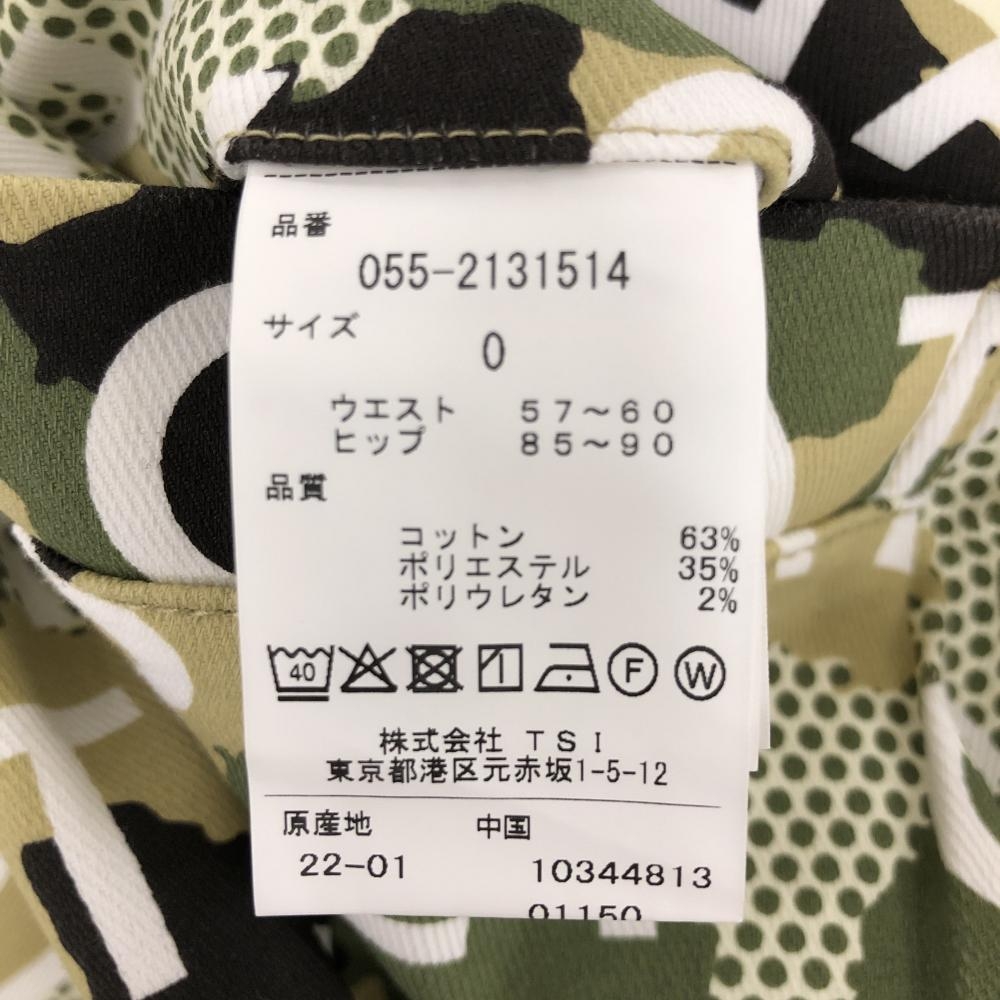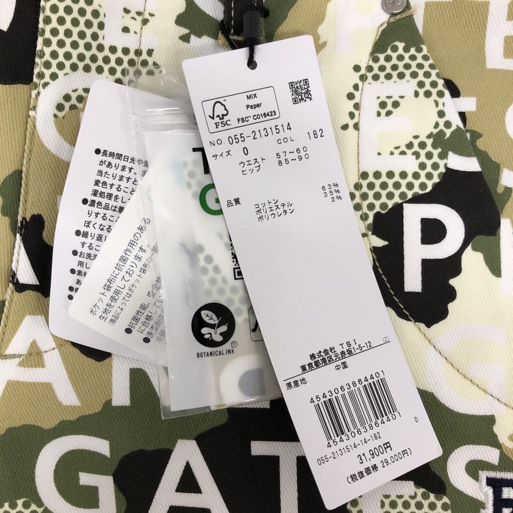 【新品】パーリーゲイツ パンツ カーキ×白 ロゴ総柄 カモフラ調 迷彩 ロゴ刺しゅう レディース 0(S) ゴルフウェア PEARLY GATES