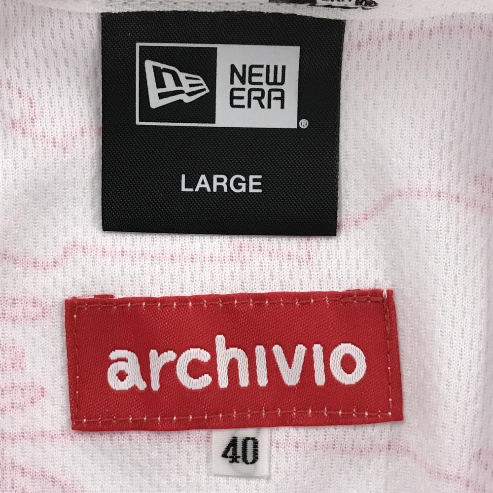 【新品】ニューエラ×アルチビオ 半袖ポロシャツ 白×ピンク 総柄 バックロゴ メンズ LARGE/40(L) ゴルフウェア New Era
