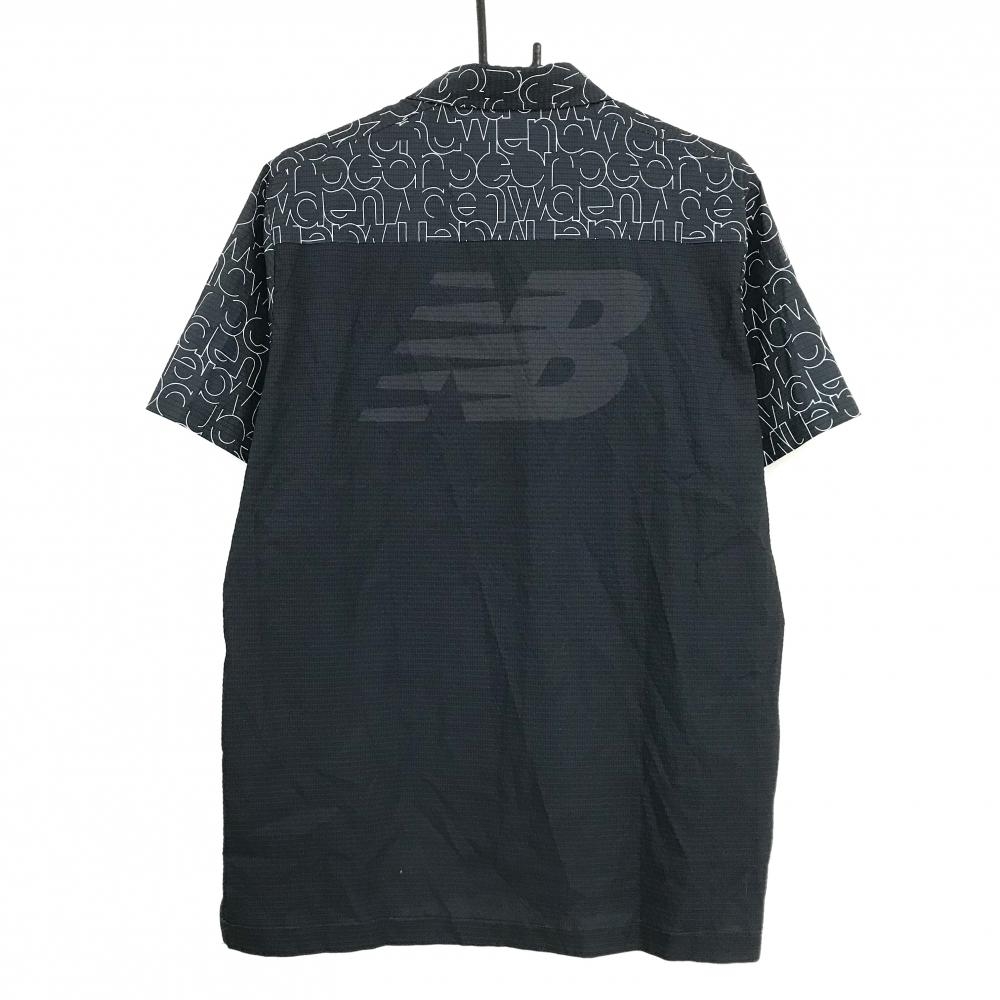 【美品】ニューバランスゴルフ 半袖ポロシャツ 黒×白 総柄 メッシュ調生地 スナップボタン メンズ 6(XL) ゴルフウェア New Balance