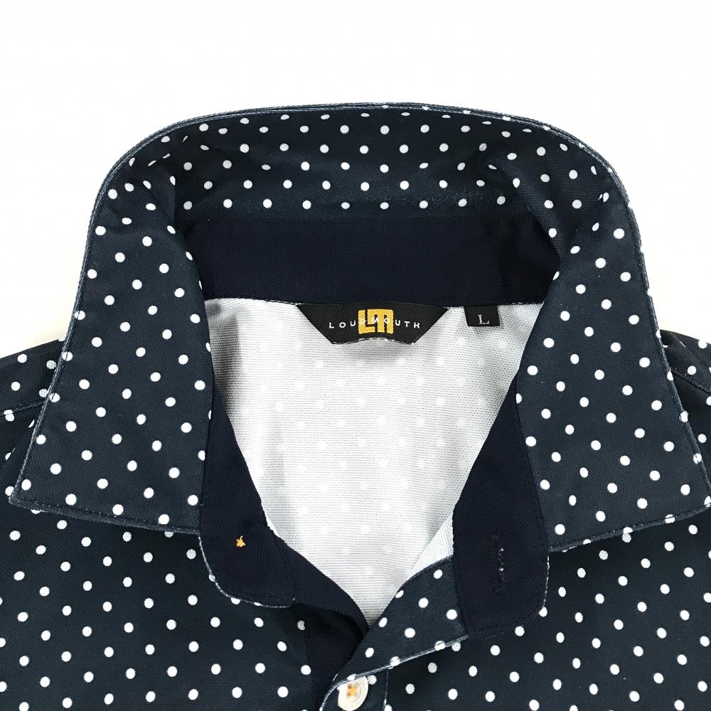 【美品】ラウドマウス 半袖ポロシャツ ネイビー×白 ドット ロゴ刺しゅう メンズ L ゴルフウェア LOUDMOUTH