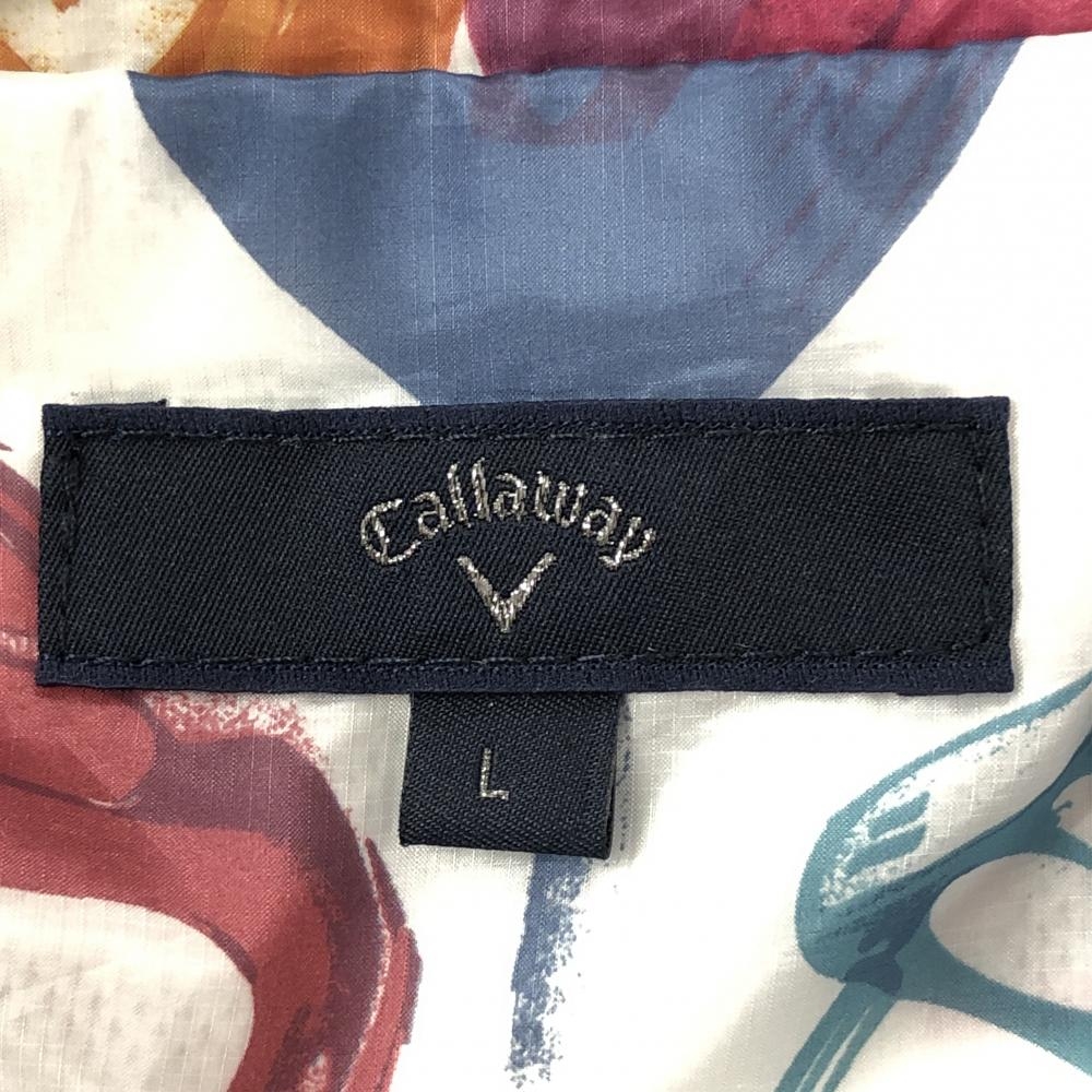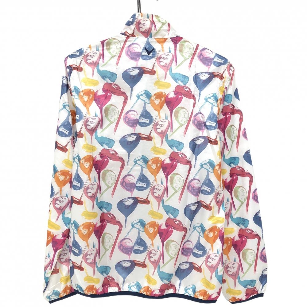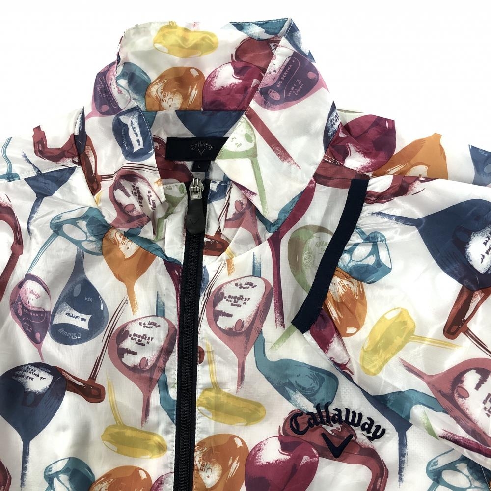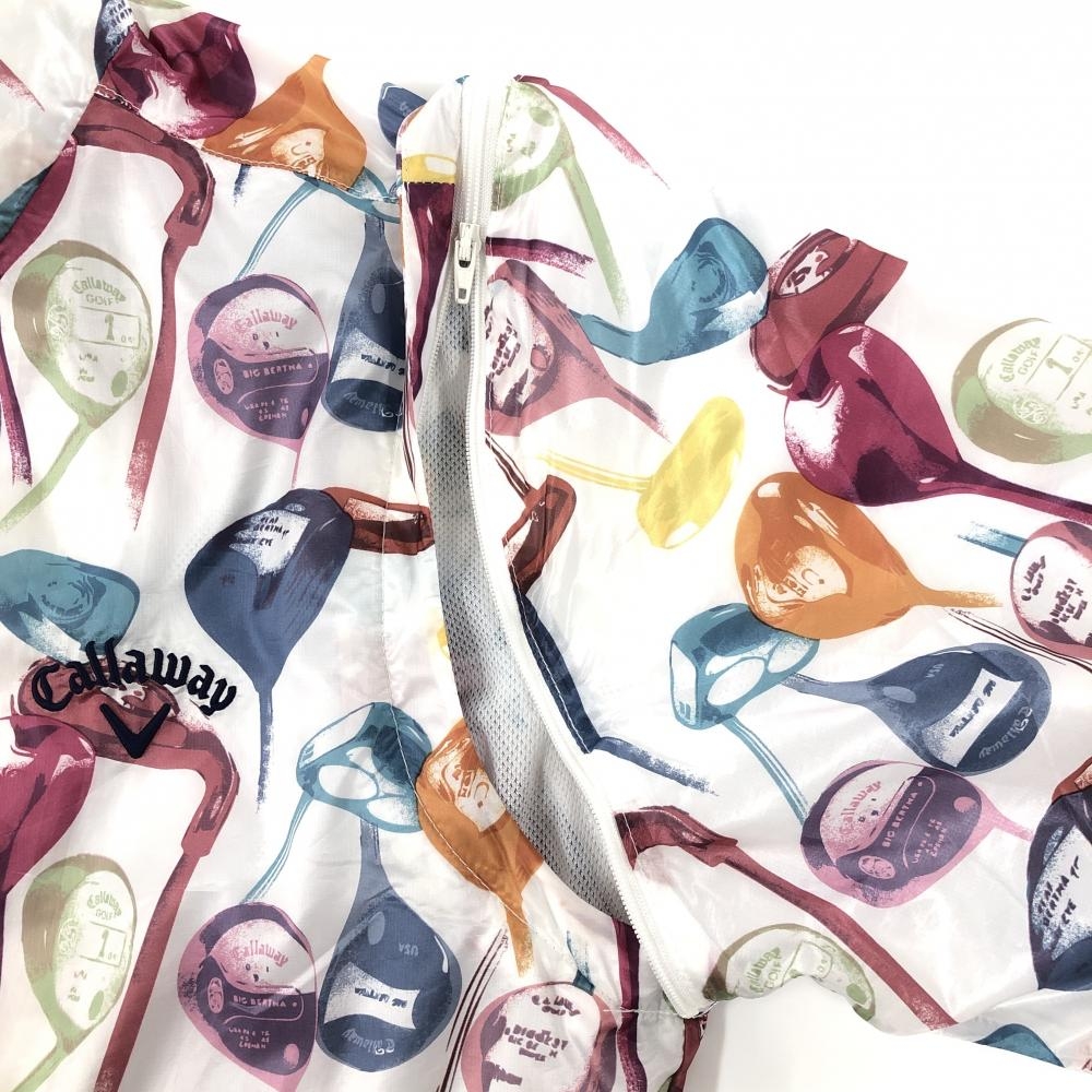 【超美品】キャロウェイ 2WAYジャケット 白×マルチカラー ゴルフクラブ総柄 メッシュ裏地 袖着脱可 メンズ L ゴルフウェア Callaway