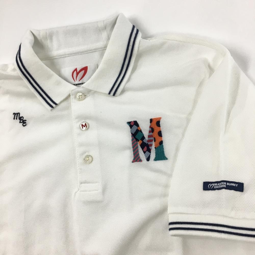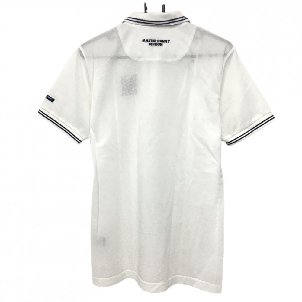 【美品】マスターバニー 半袖ポロシャツ 白×ネイビー 襟ロゴ刺しゅう メンズ 5(L) ゴルフウェア MASTER BUNNY EDITION