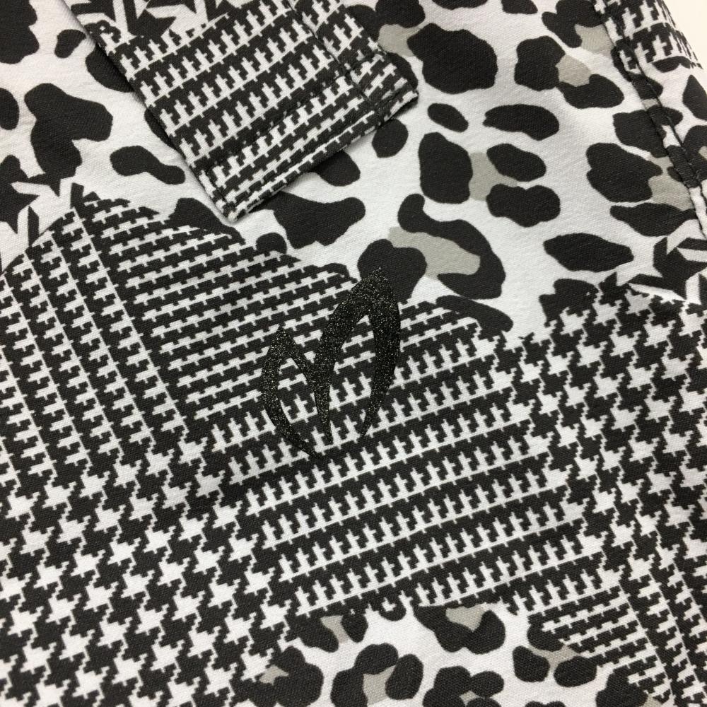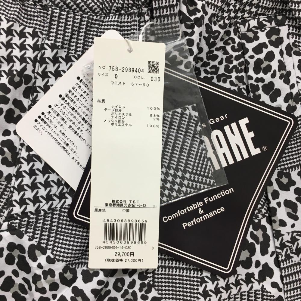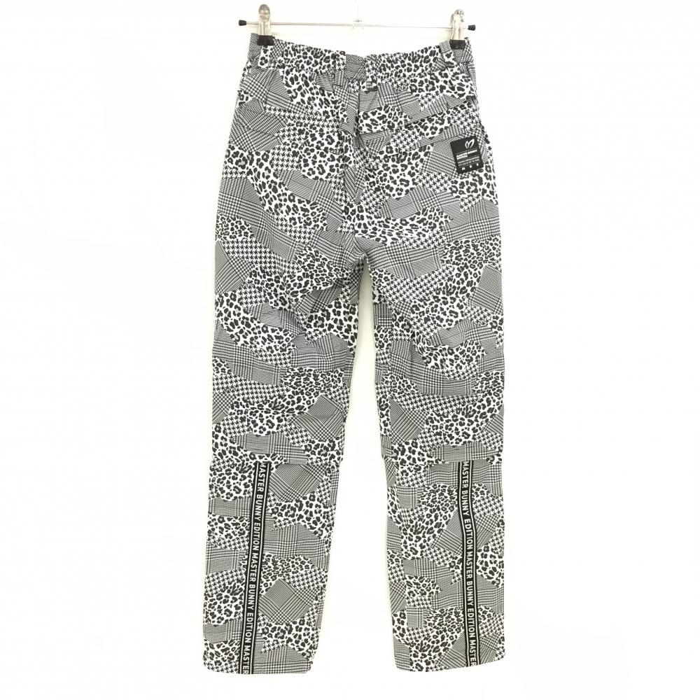 【新品】マスターバニー レインパンツ 白×黒 総柄 レオパード 千鳥風 裾サイドロゴ レディース 0(S) ゴルフウェア MASTER BUNNY EDITION