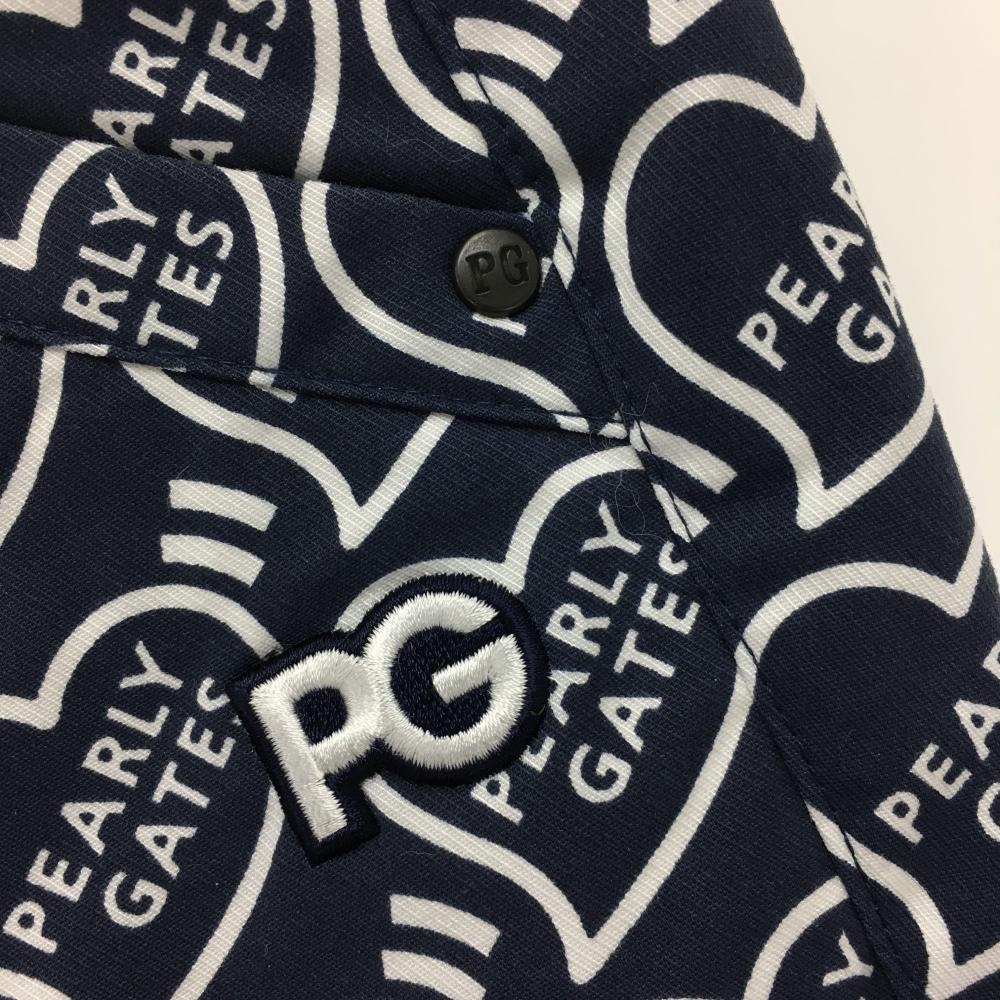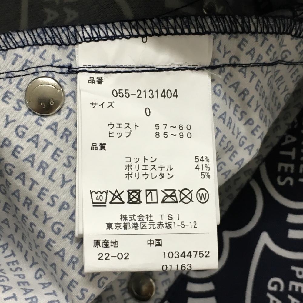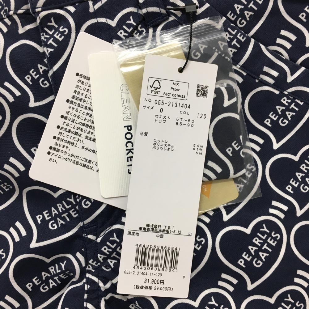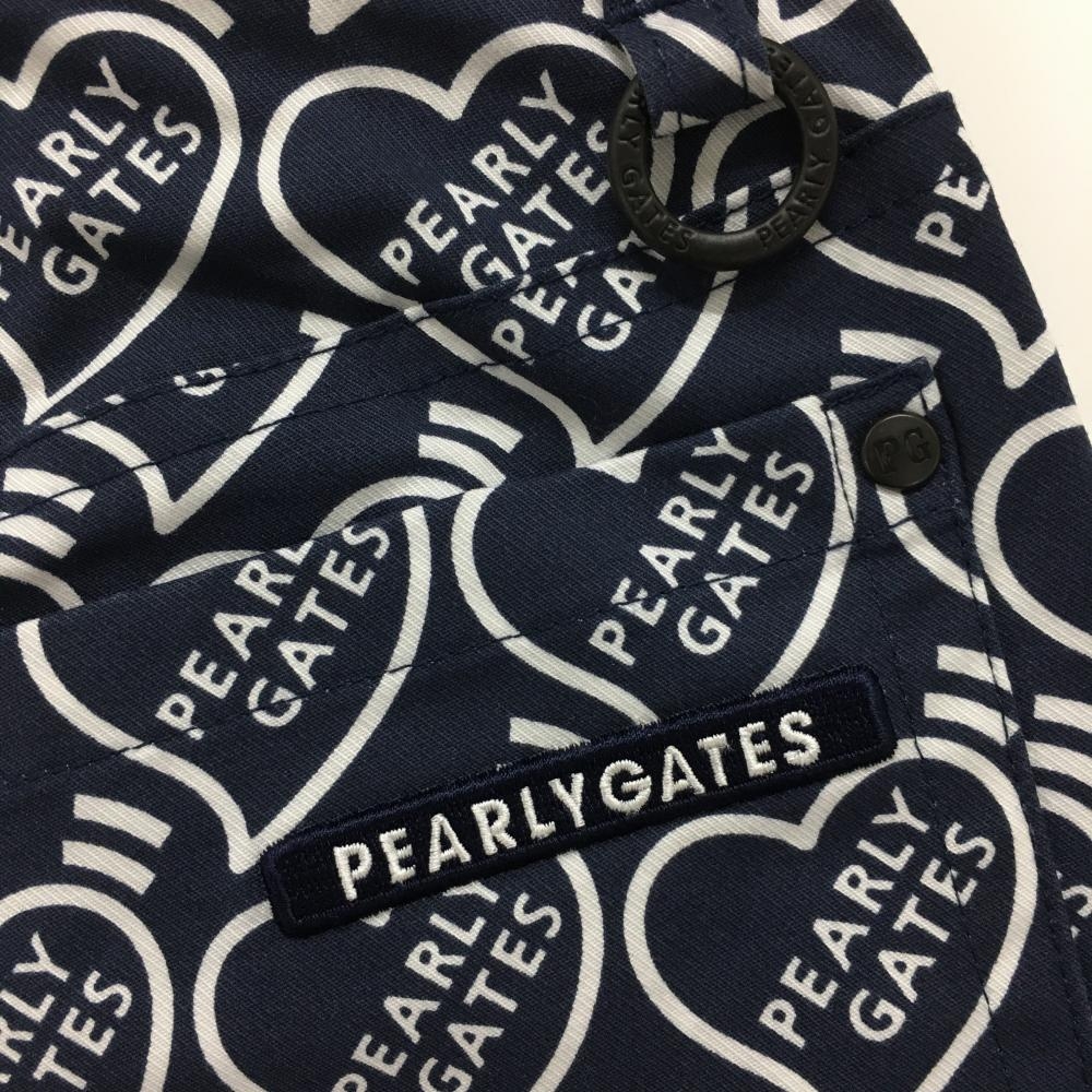 【新品】パーリーゲイツ パンツ ネイビー白 ハートロゴ総柄 ロゴ刺しゅう ストレッチ レディース 0(S) ゴルフウェア PEARLY GATES