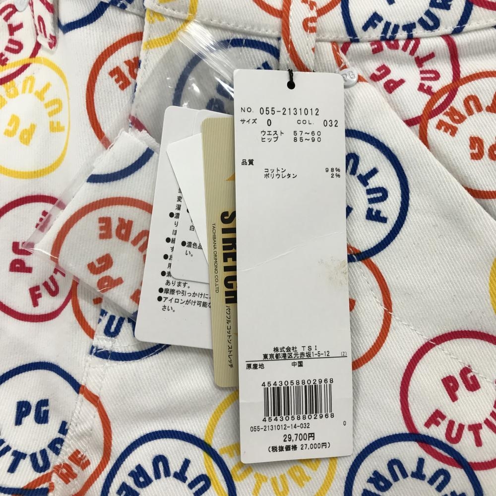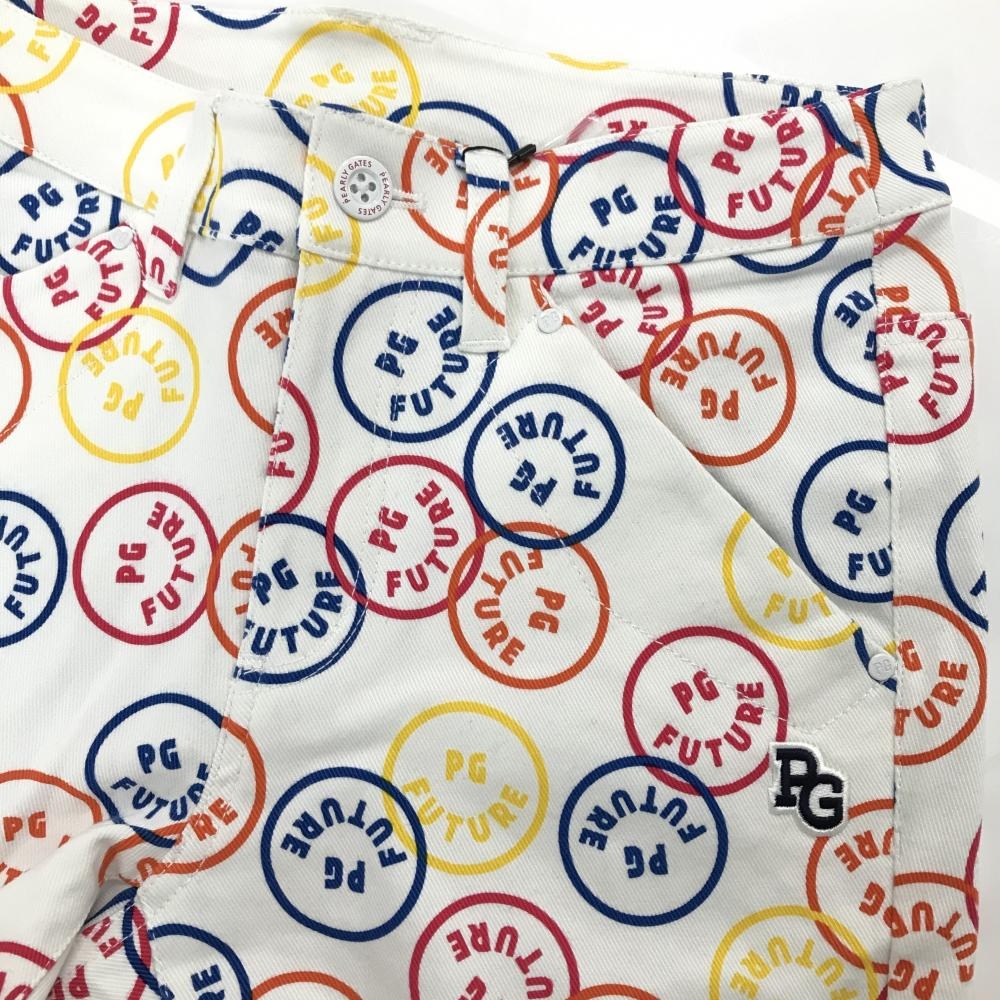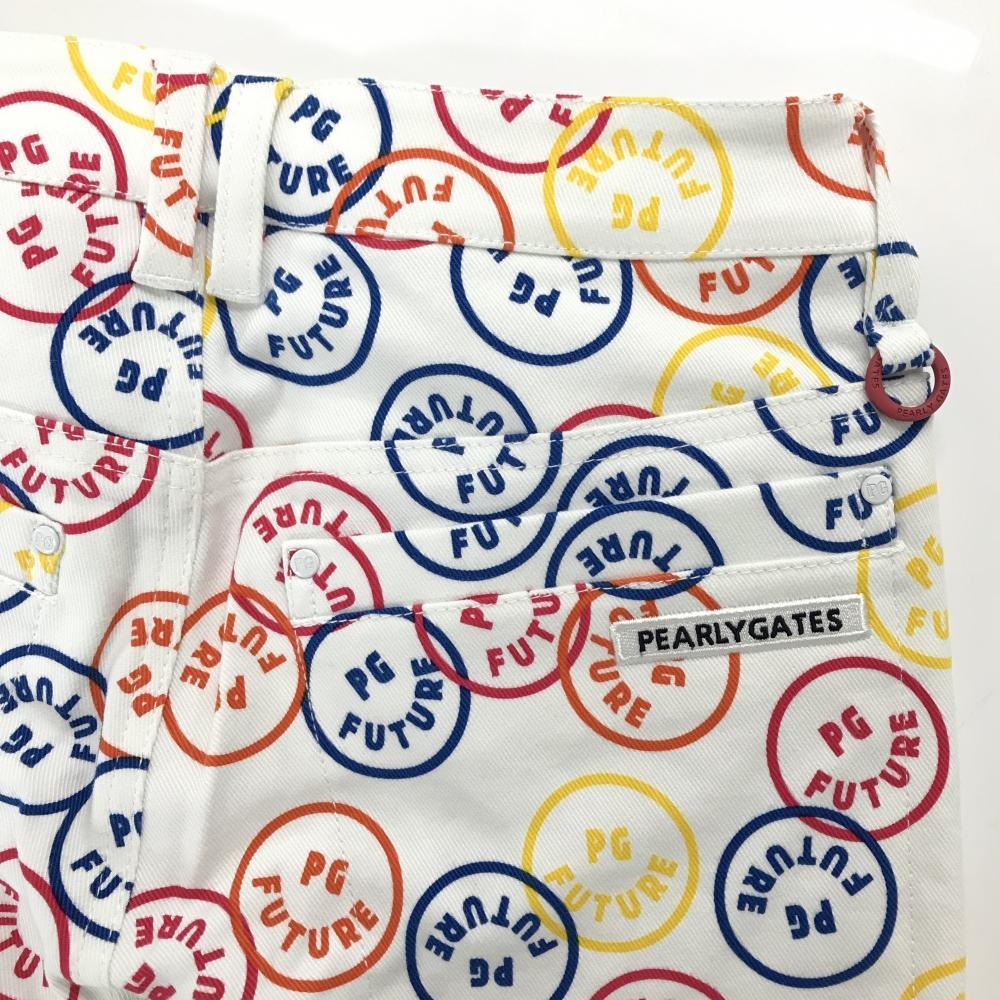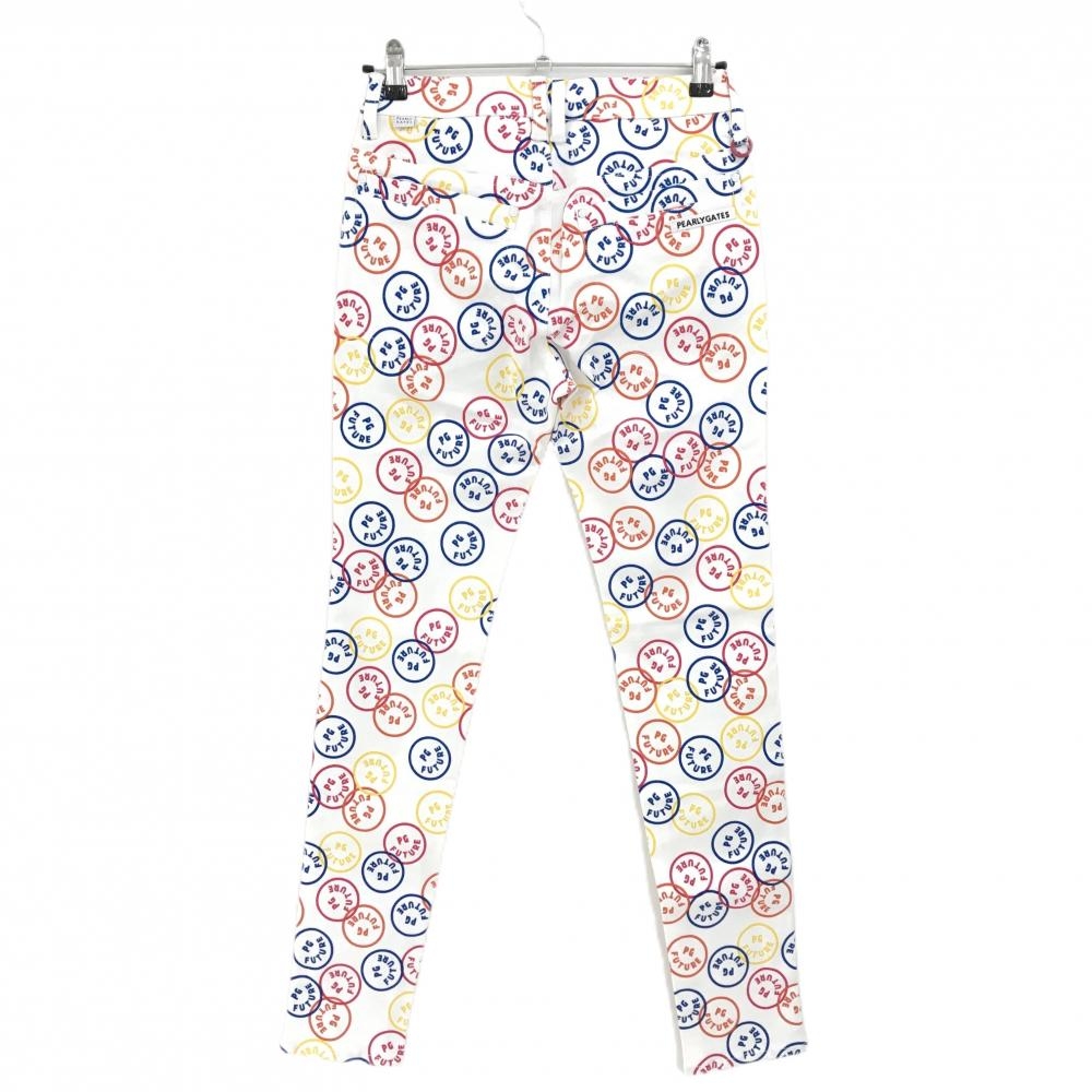 【新品】パーリーゲイツ パンツ 白×マルチカラー FUTUREニコ ストレッチ レディース 0(S) ゴルフウェア PEARLY GATES