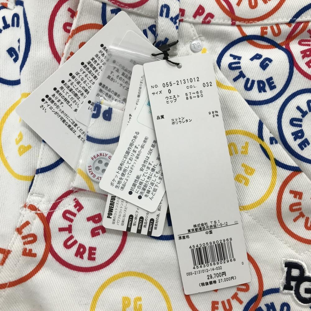 【新品】パーリーゲイツ パンツ 白×マルチカラー FUTUREニコ ストレッチ レディース 0(S) ゴルフウェア PEARLY GATES