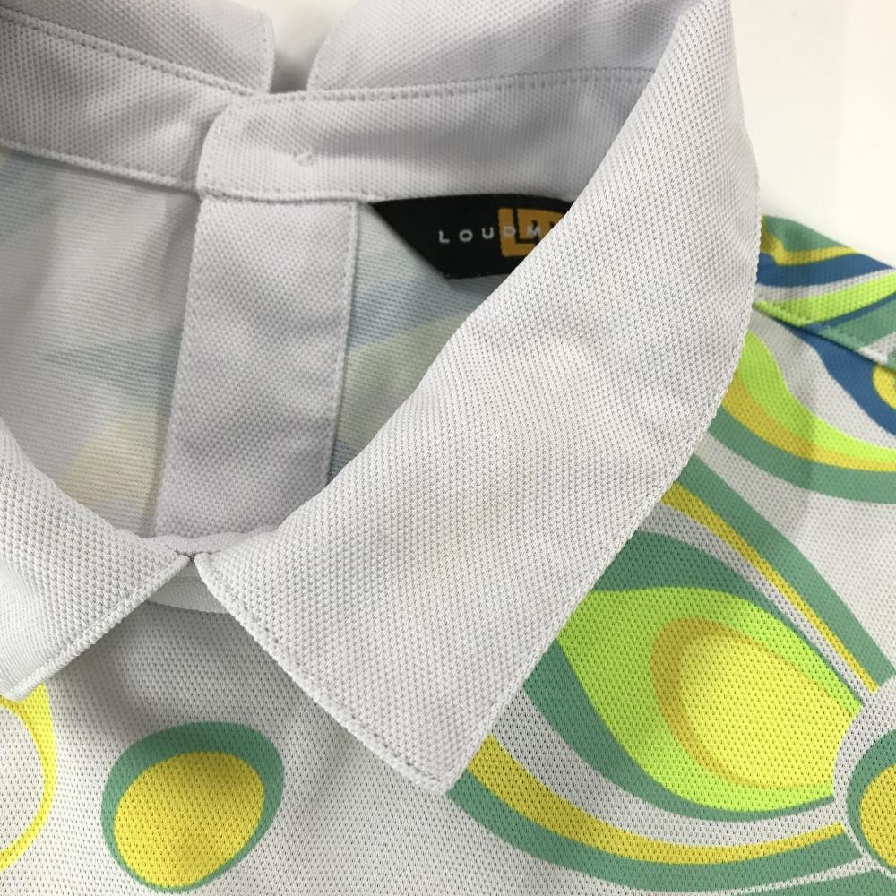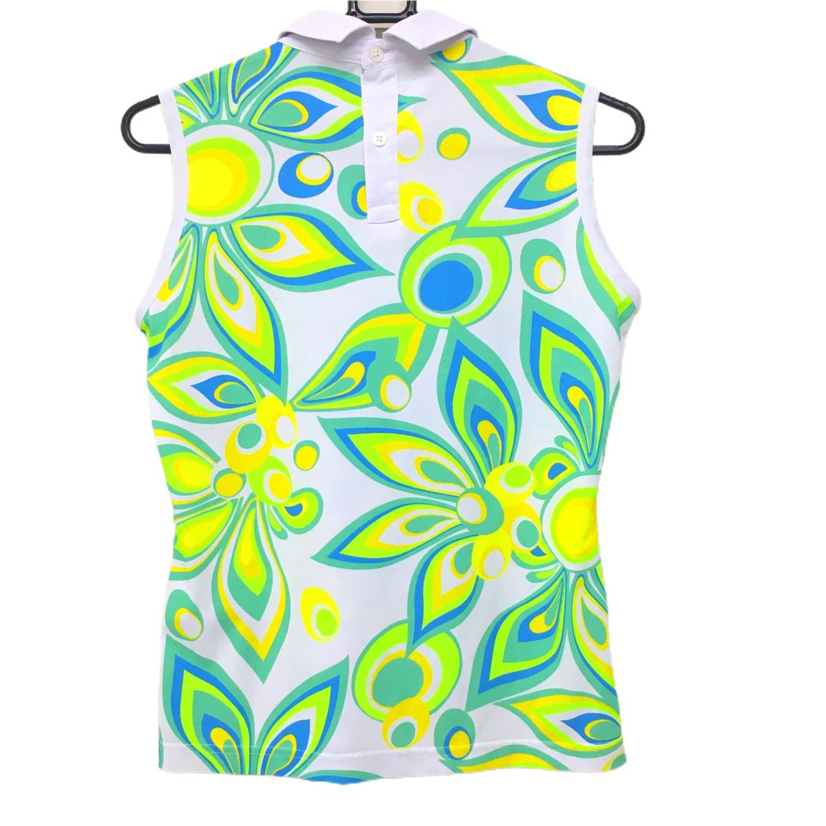 ラウドマウス ノースリーブポロシャツ 白×ミントグリーン×蛍光イエロー シャガデリック柄 レディース L ゴルフウェア LOUDMOUTH