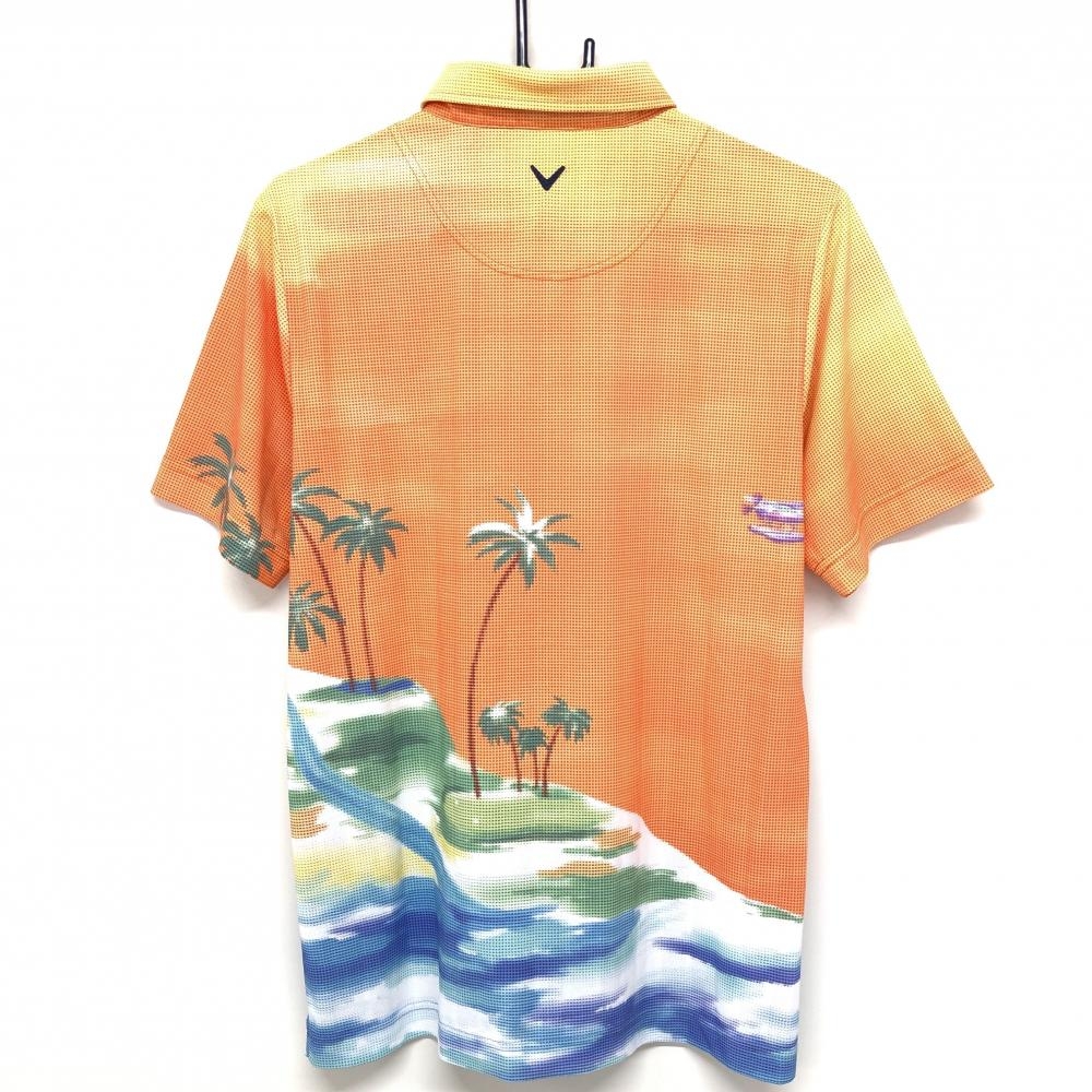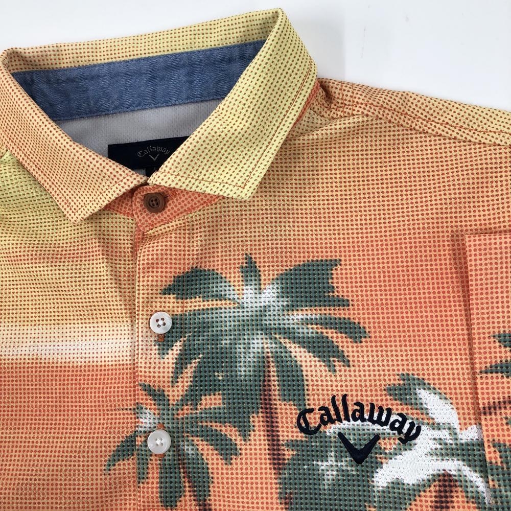 【超美品】キャロウェイ 半袖ポロシャツ マルチカラー サーファー・ヤシの木柄 ロゴ刺しゅう メンズ L ゴルフウェア Callaway