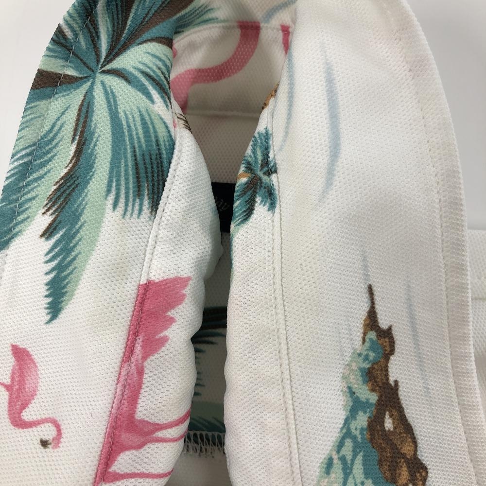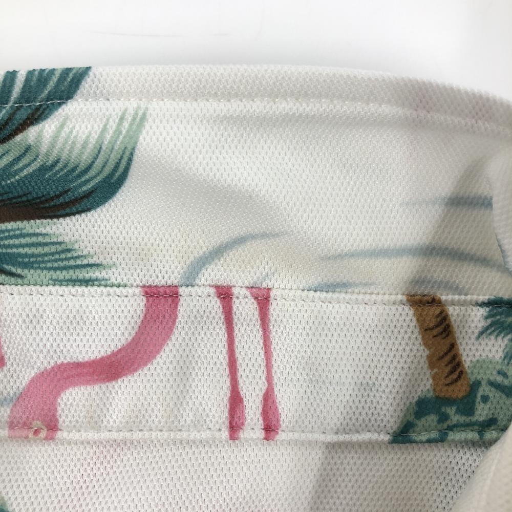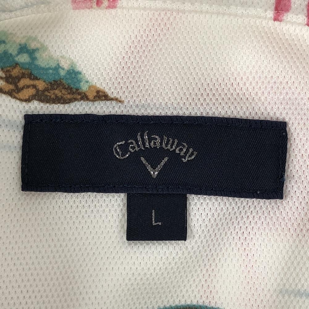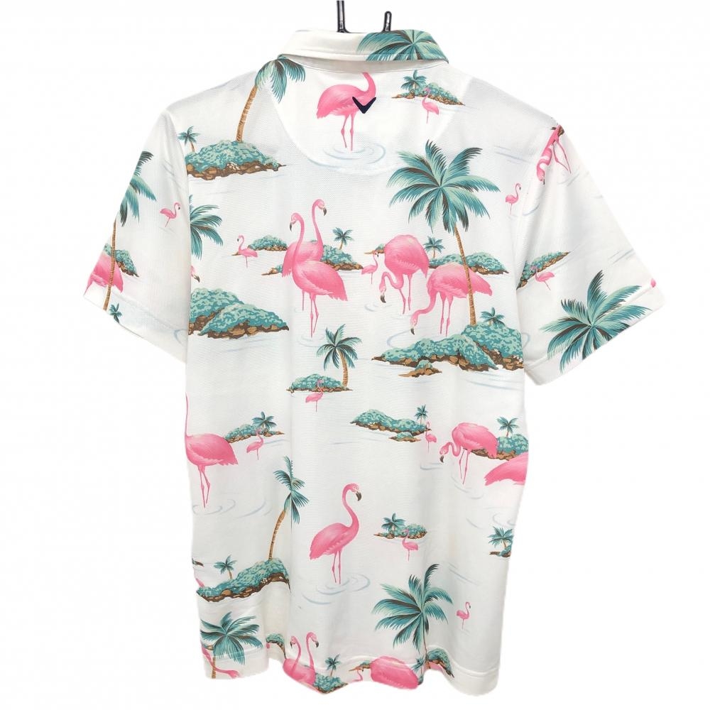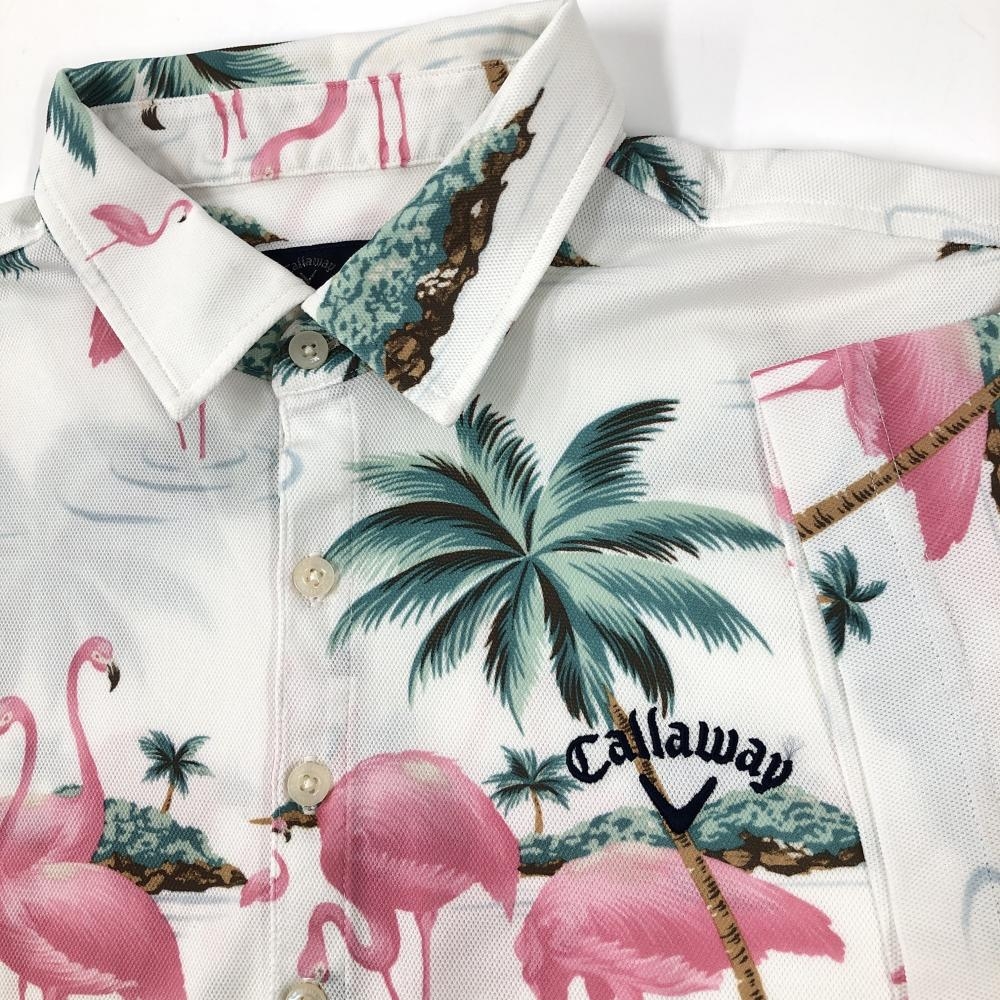 【美品】キャロウェイ 半袖ポロシャツ 白×ピンク×グリーン フラミンゴ総柄 メンズ L ゴルフウェア Callaway