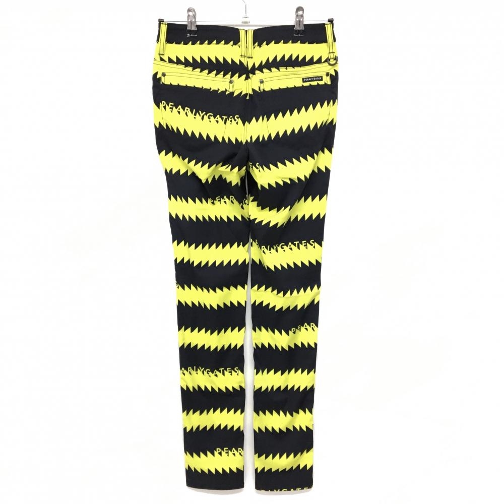 【新品】パーリーゲイツ パンツ 黒×イエロー ギザギザボーダー ストレッチ レディース 0(S) ゴルフウェア PEARLY GATES