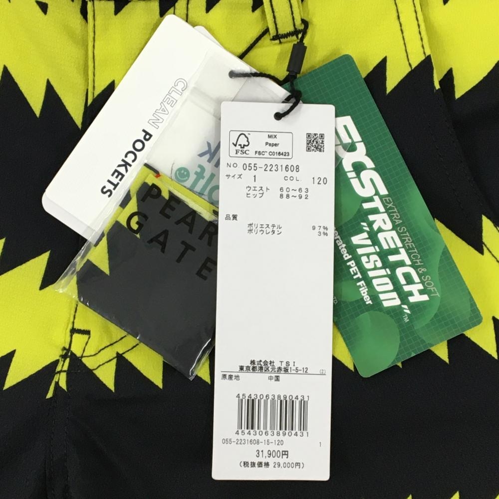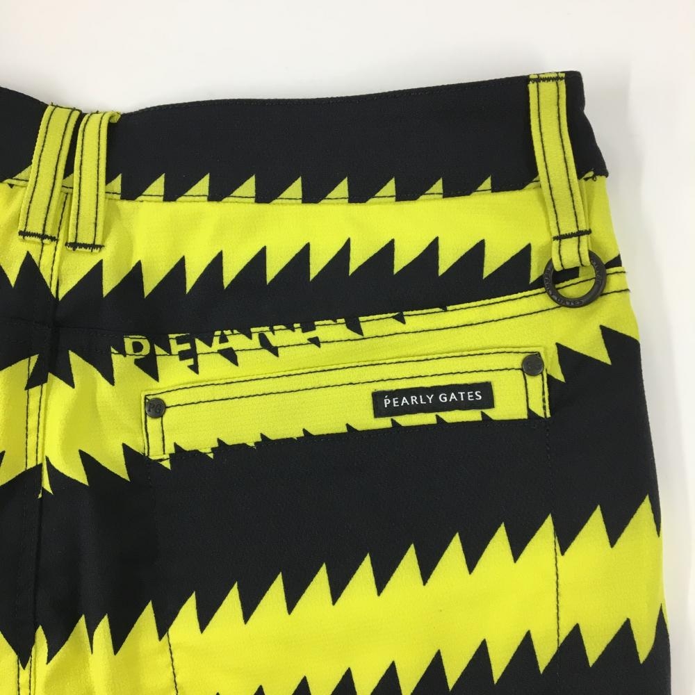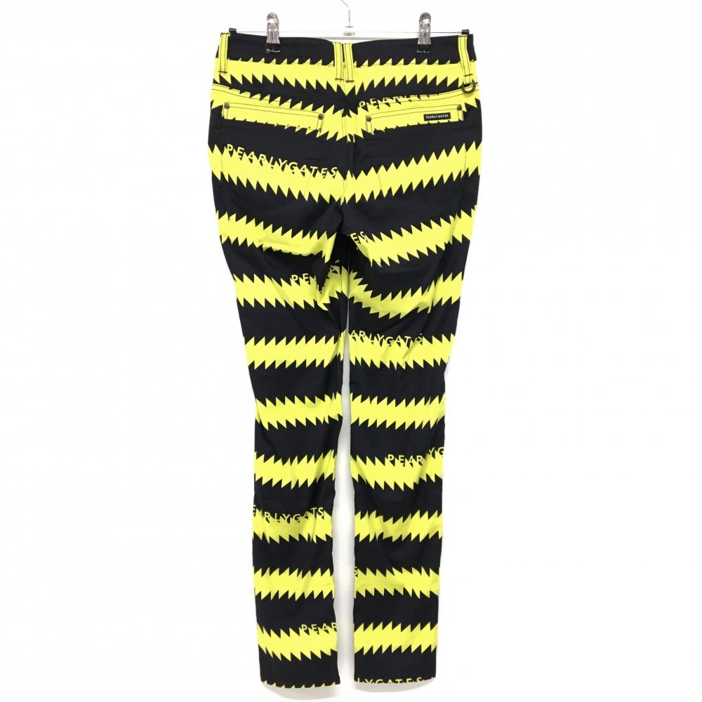 【新品】パーリーゲイツ パンツ 黒×イエロー ギザギザボーダー ストレッチ レディース 1(M) ゴルフウェア PEARLY GATES