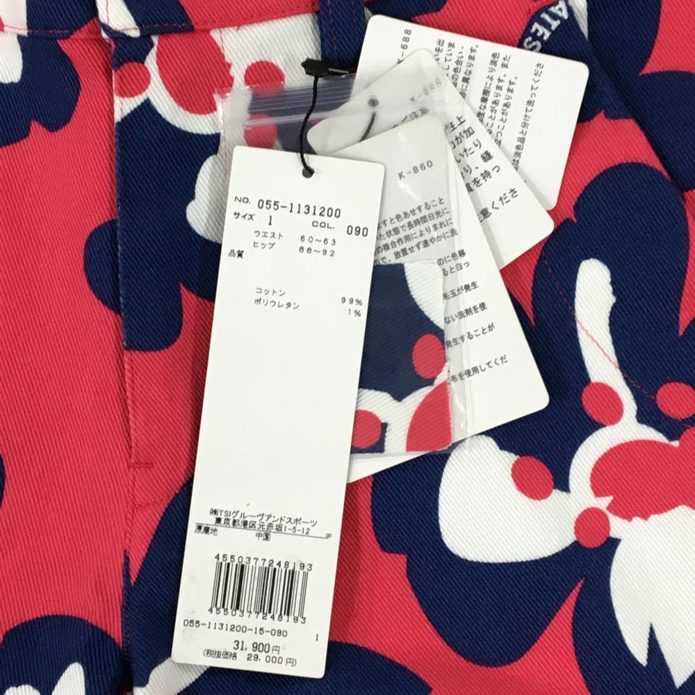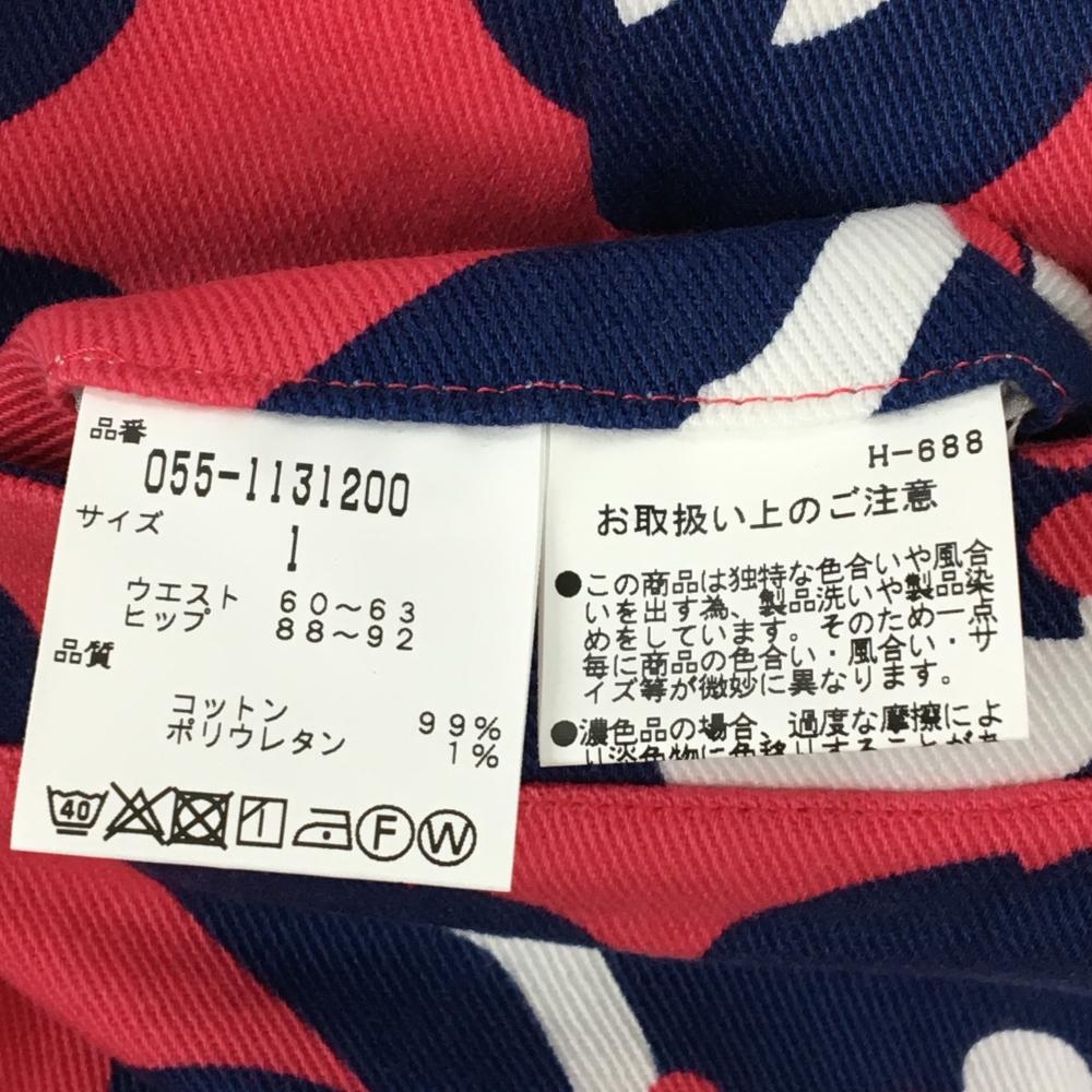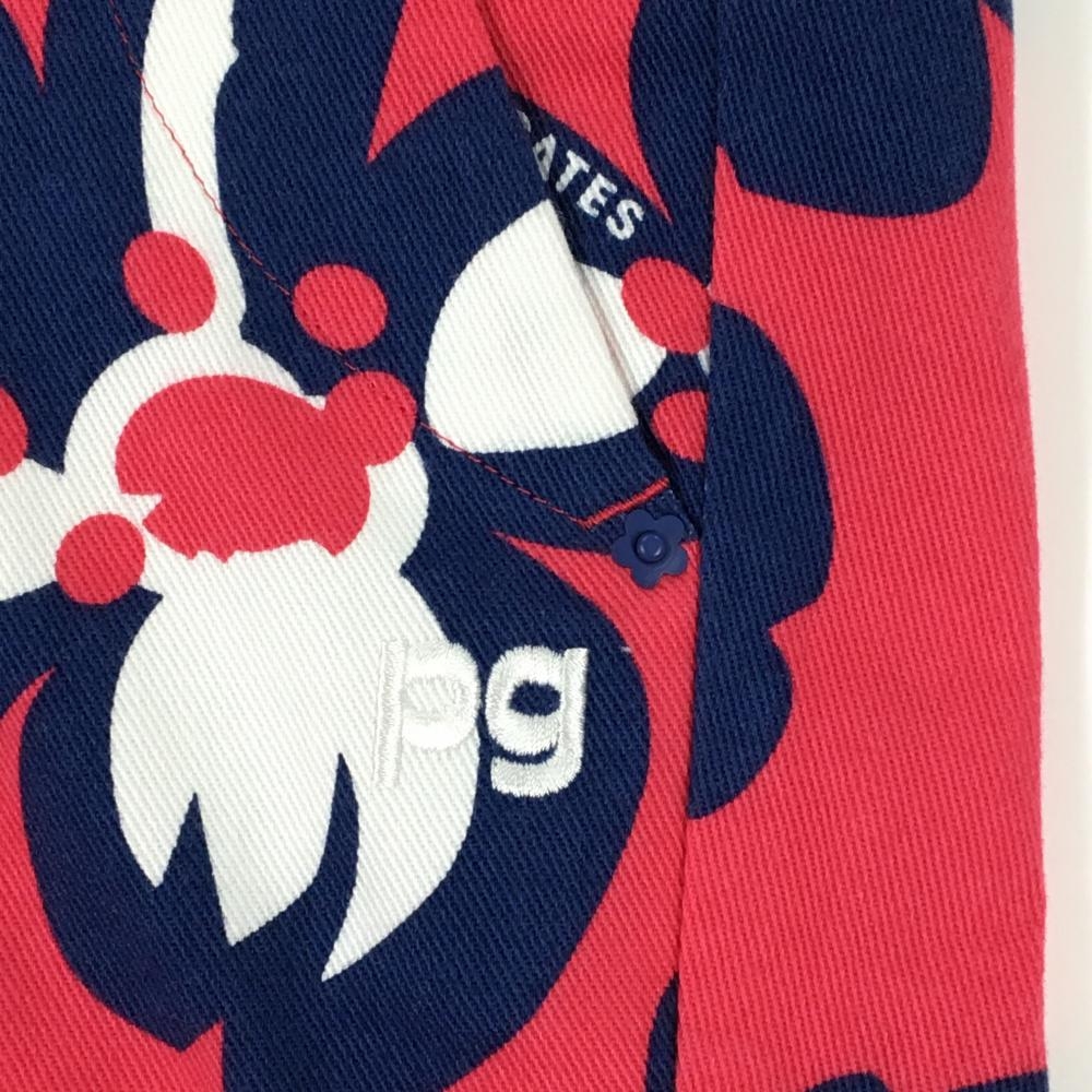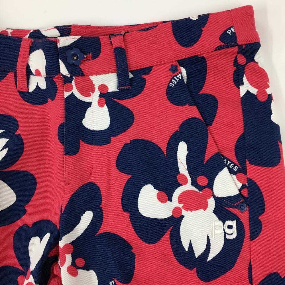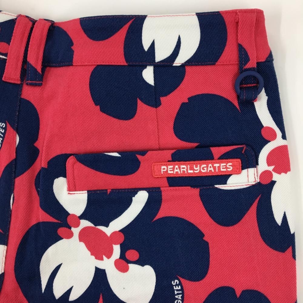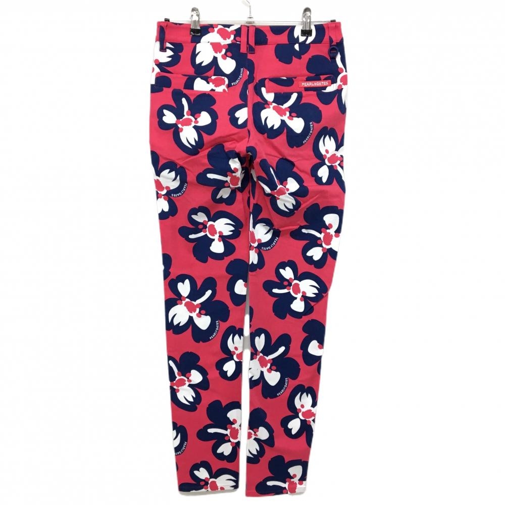 【新品】パーリーゲイツ パンツ レッドピンク×ネイビー 花柄 ロゴ刺しゅう レディース 1(M) ゴルフウェア PEARLY GATES