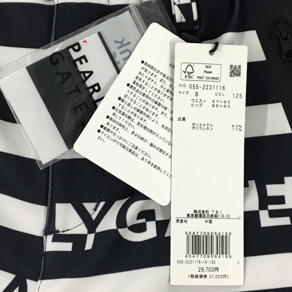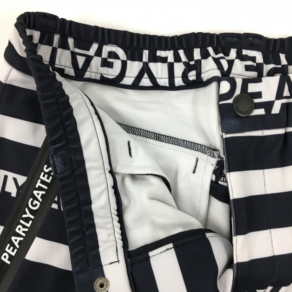 【新品】パーリーゲイツ ジョガーパンツ 白×ネイビー ボーダー 裏微起毛 ウエストゴム レディース 0(S) ゴルフウェア PEARLY GATES