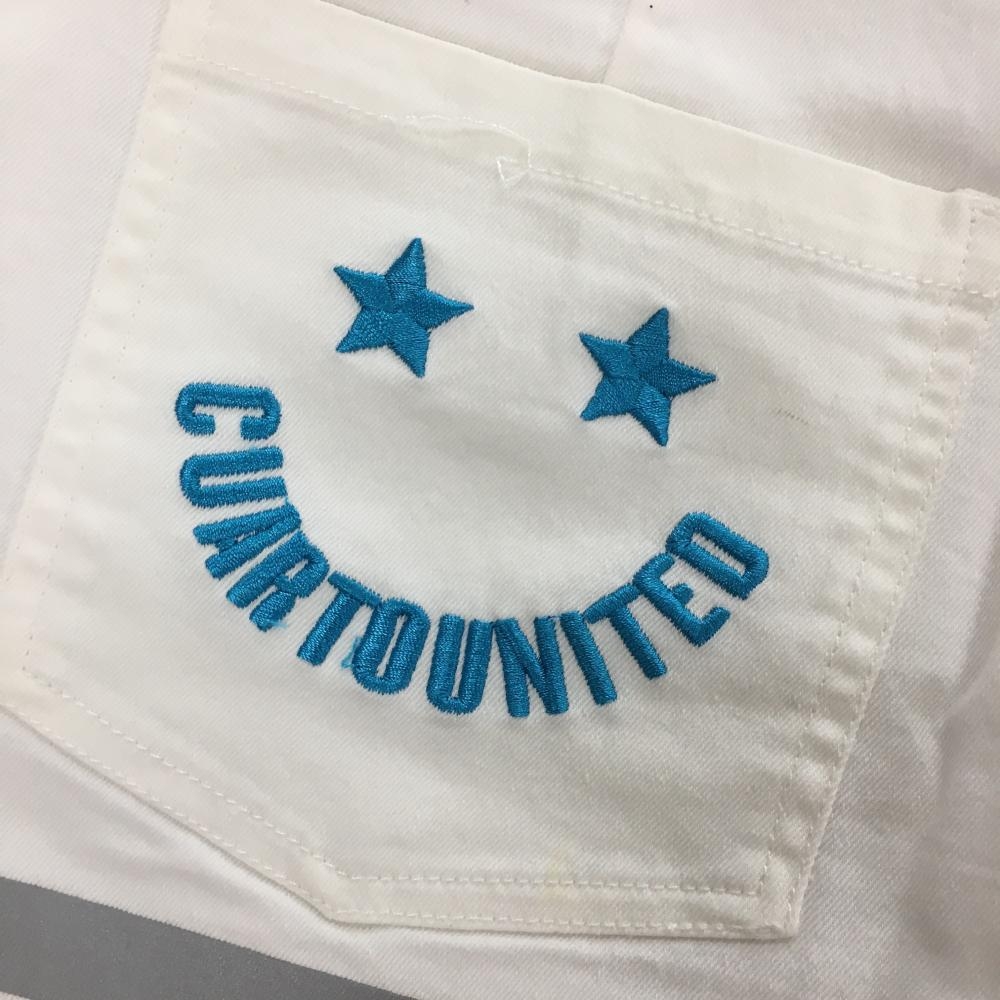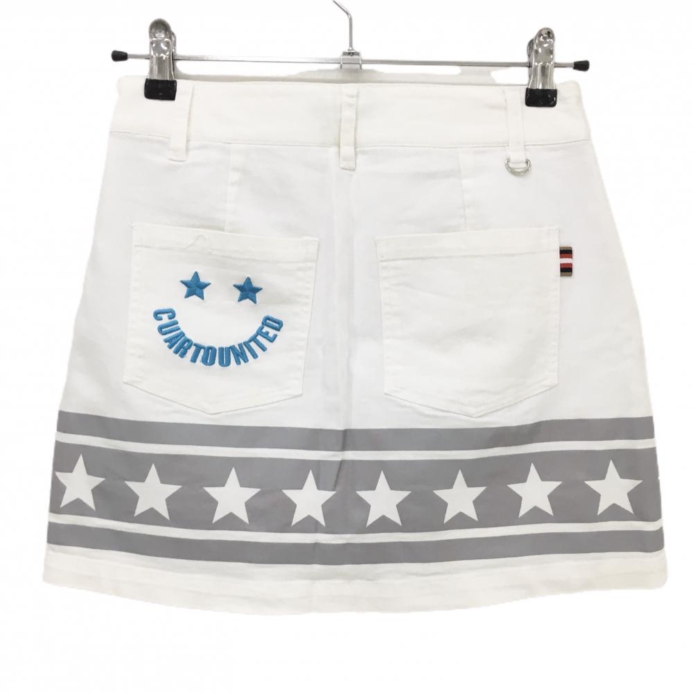 【美品】クアルトユナイテッド スカート 白×ライトブルー ロゴ刺しゅう 星 レディース M ゴルフウェア CUARTO UNITED