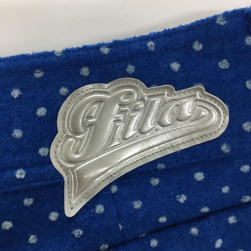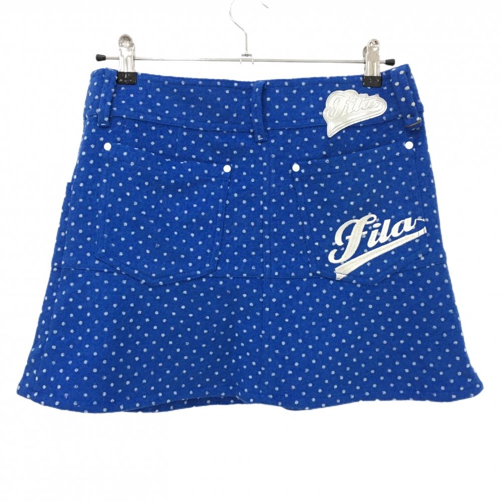 【美品】フィラゴルフ ニットスカート ブルー×白 ドット柄 ウール混 ストレッチ レディース L ゴルフウェア FILA GOLF