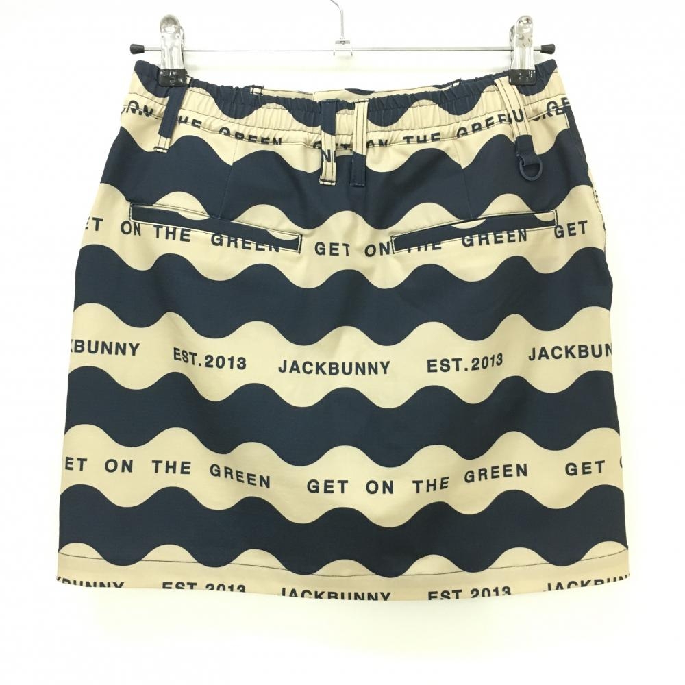 【美品】ジャックバニー スカート ベージュ×ネイビー 波柄 内側インナーパンツ レディース 2(L) ゴルフウェア 2024年モデル Jack Bunny