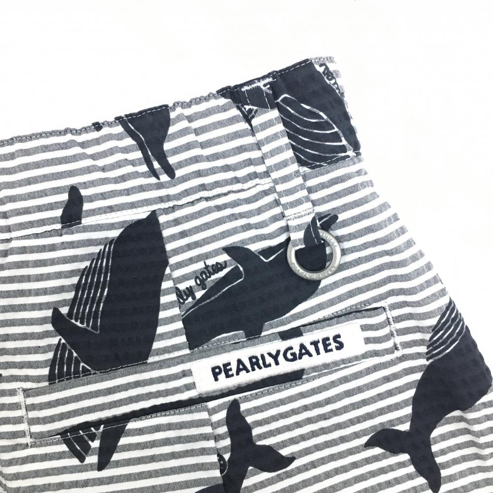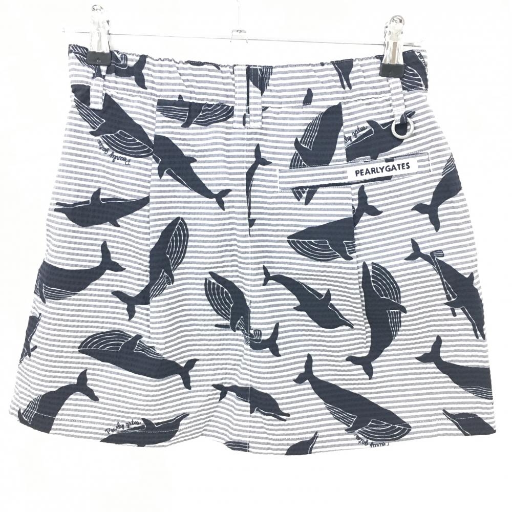 【新品】パーリーゲイツ スカート 白×グレー×黒 総柄 イルカ クジラ ボーダー サッカー生地 レディース 0(S) ゴルフウェア PEARLY GATES