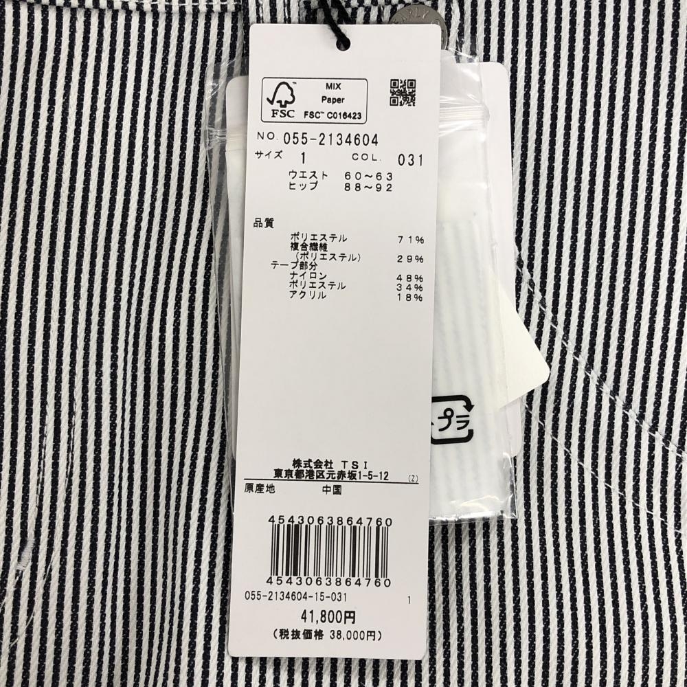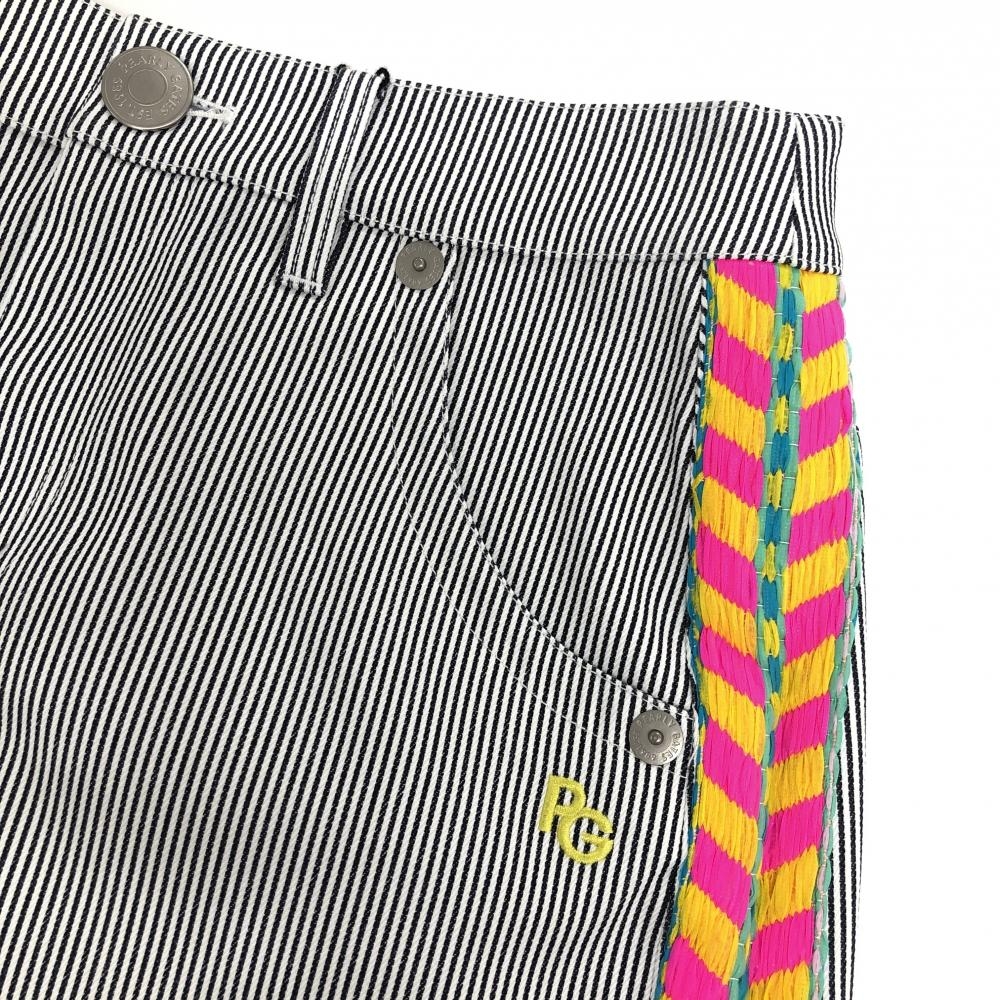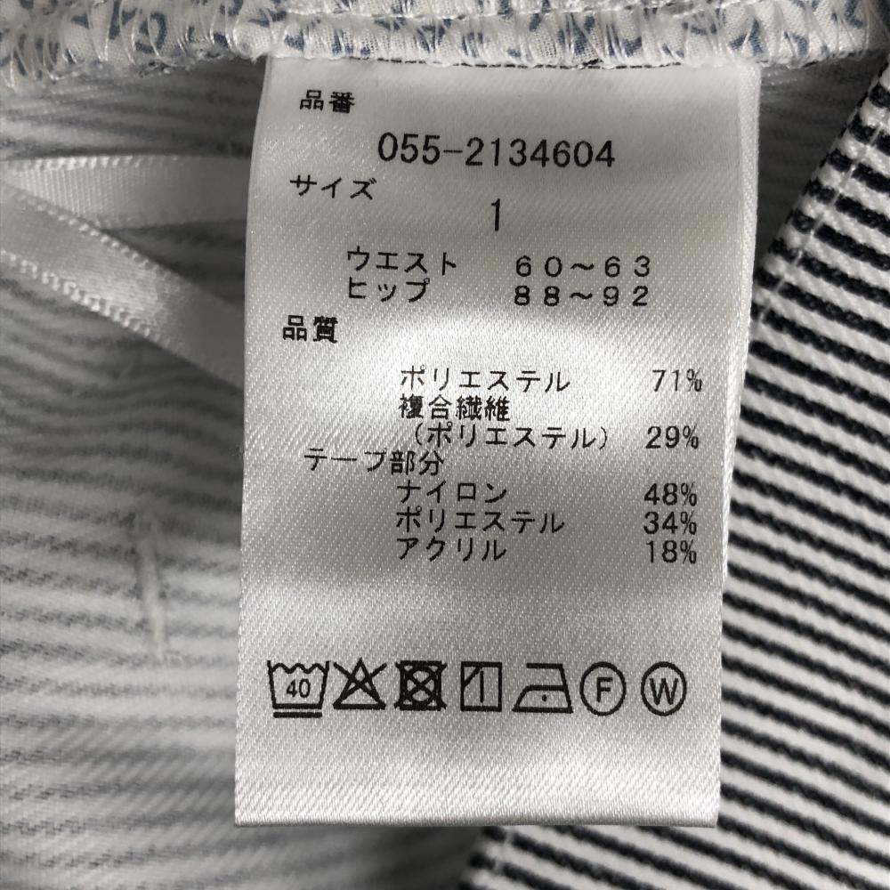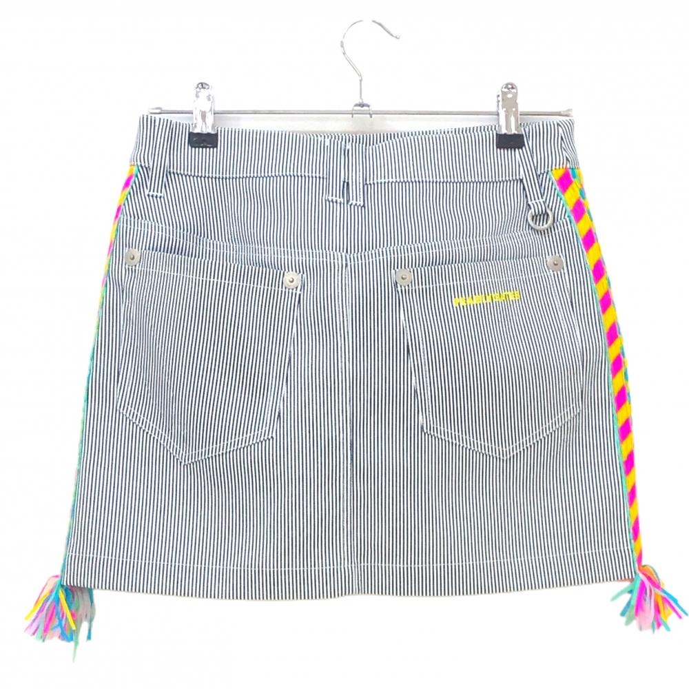 【新品】パーリーゲイツ スカート 白×ネイビー ストライプ サイド異素材 フリンジ レディース 1(M) ゴルフウェア PEARLY GATES