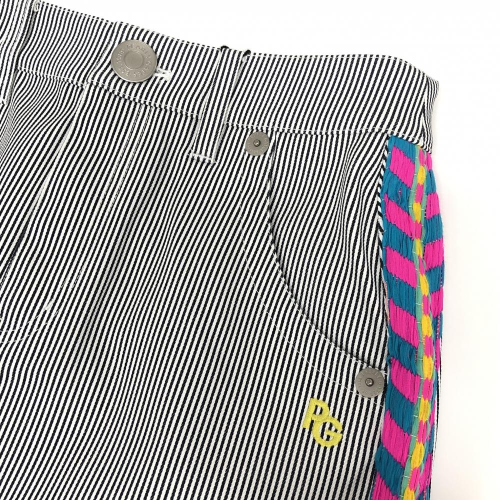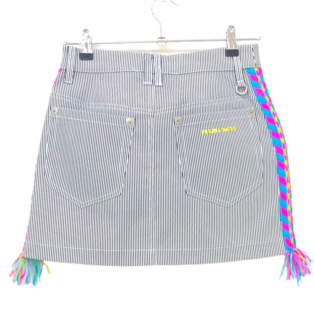 【新品】パーリーゲイツ スカート 白×ネイビー ストライプ サイド異素材 フリンジ レディース 0(S) ゴルフウェア PEARLY GATES