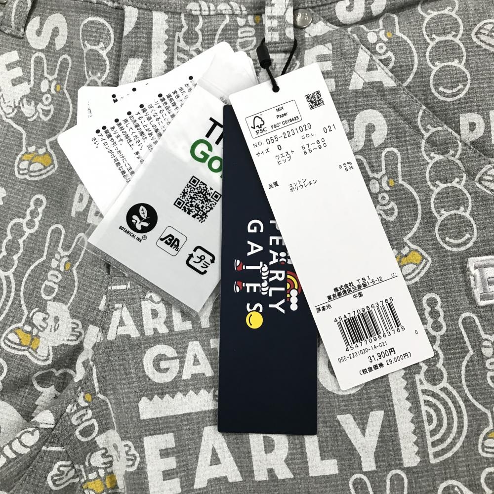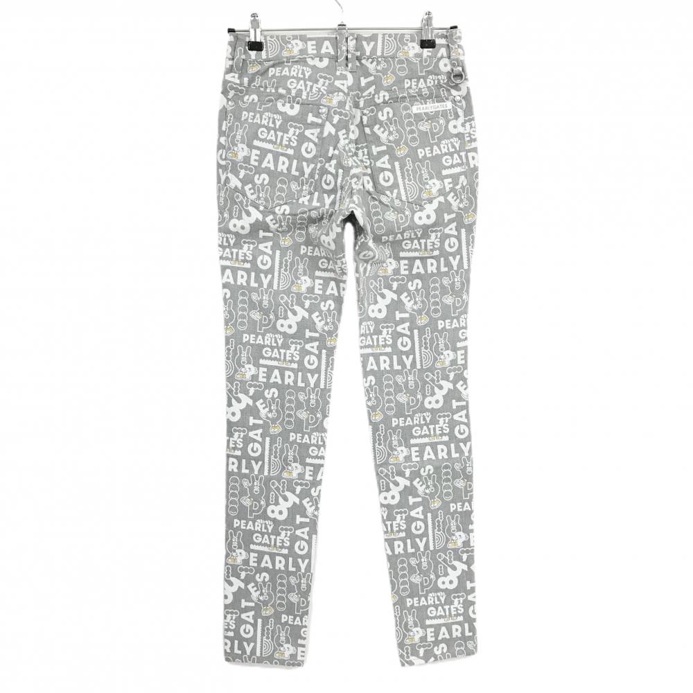 【新品】パーリーゲイツ パンツ グレー×白 ロゴ総柄 どうしちゃったPG レディース 0(S) ゴルフウェア PEARLY GATES