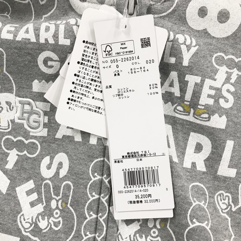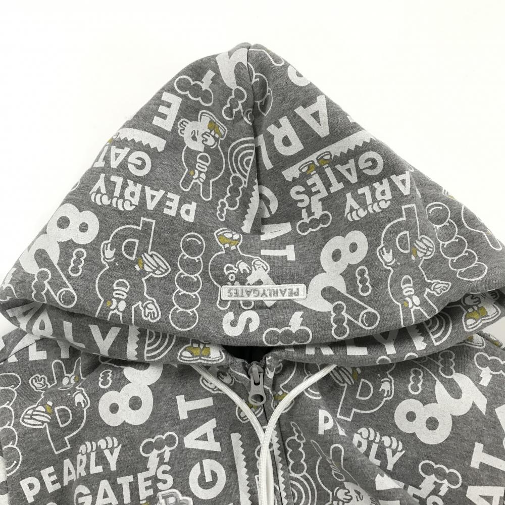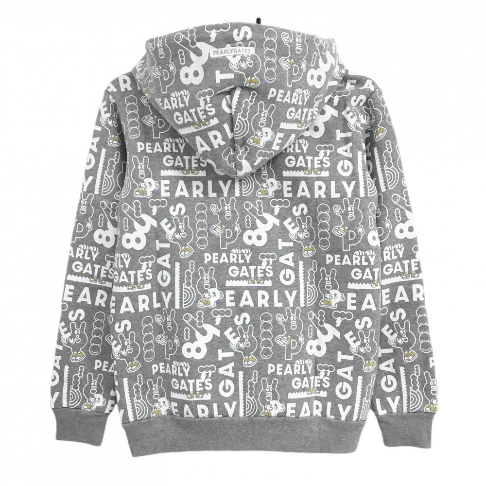 【新品】パーリーゲイツ ジップパーカー グレー×白 ロゴ総柄 どうしちゃったPG 裏起毛 レディース 0(S) ゴルフウェア PEARLY GATES