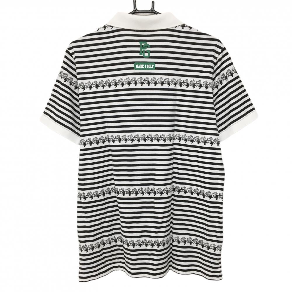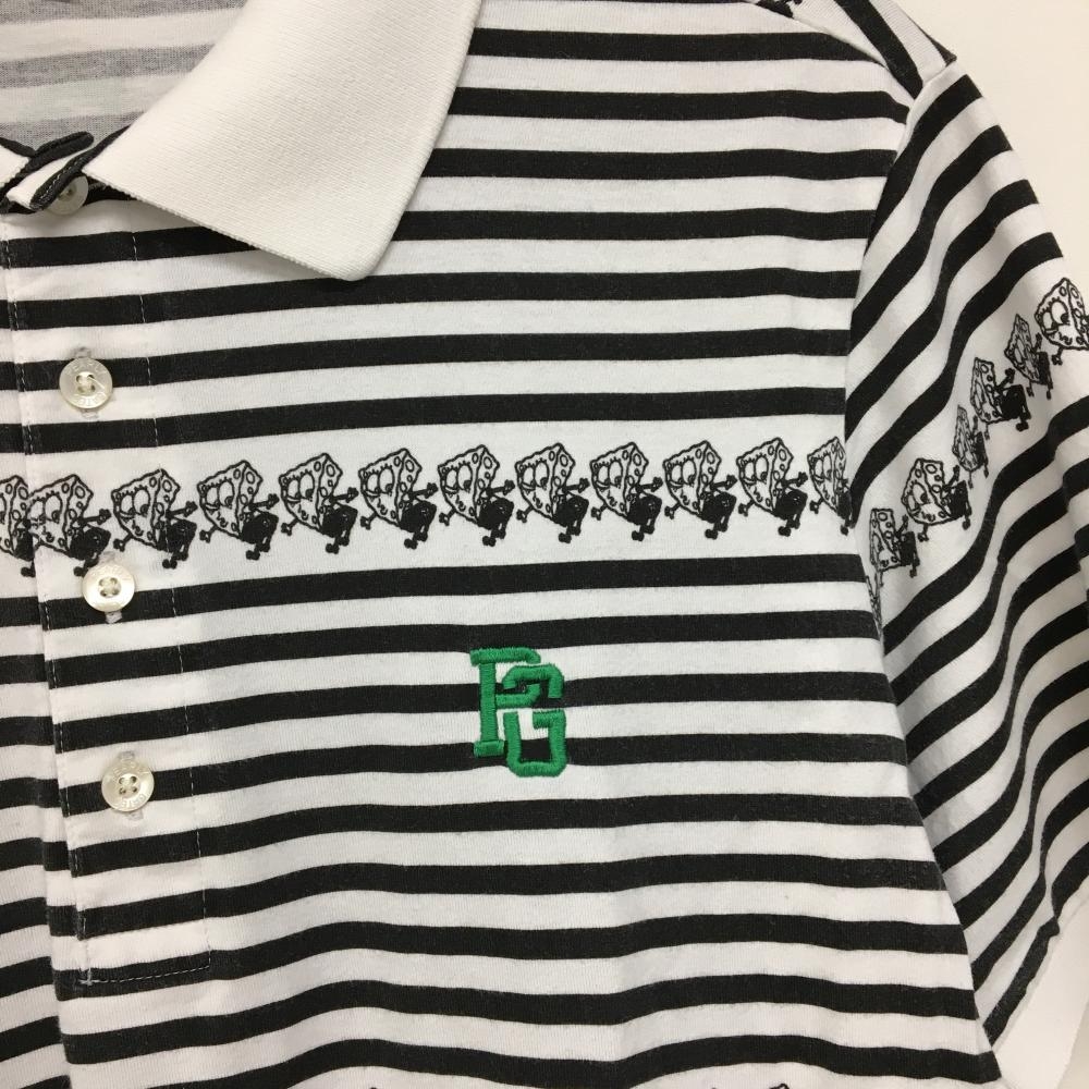 パーリーゲイツ×スポンジボブ 半袖ポロシャツ 白×黒 ボーダー メンズ 6(XL) ゴルフウェア PEARLY GATES