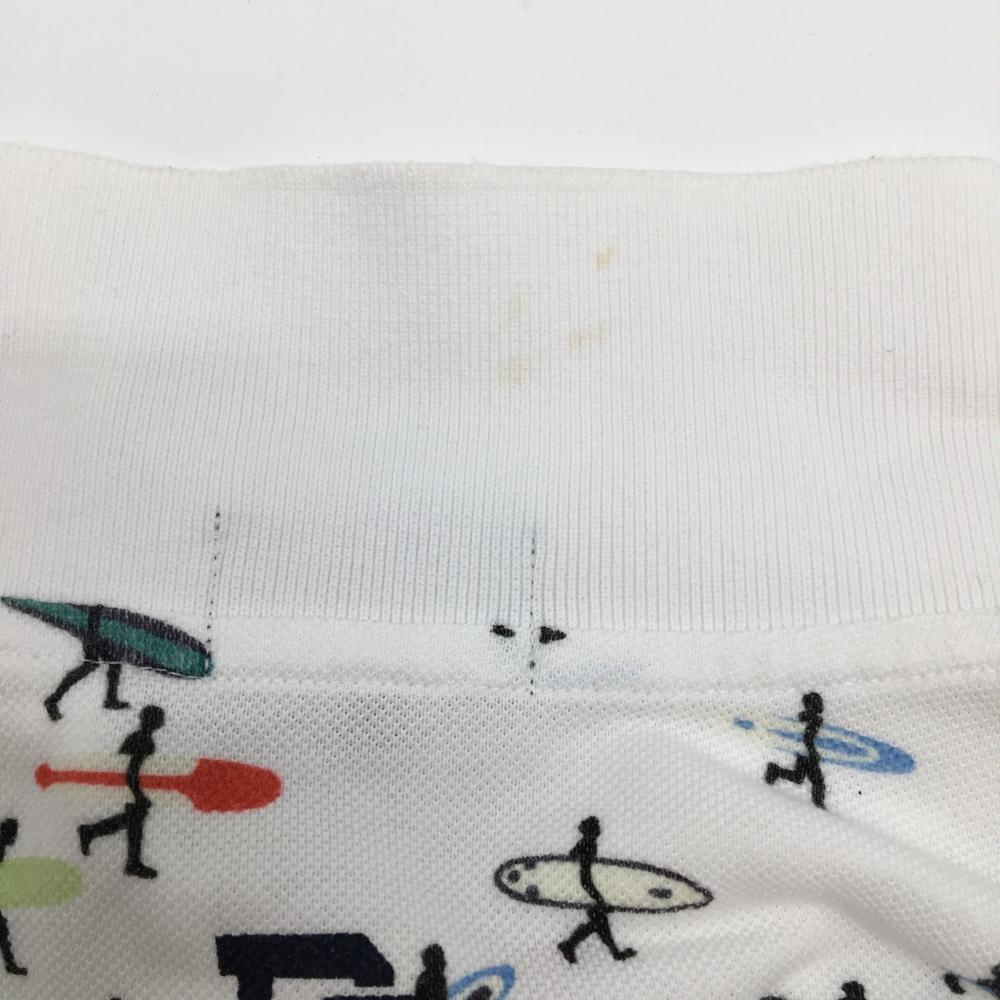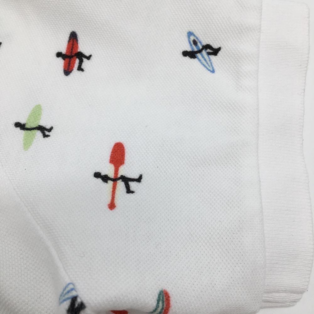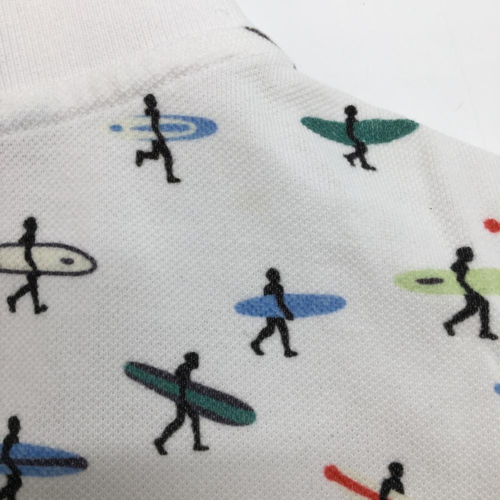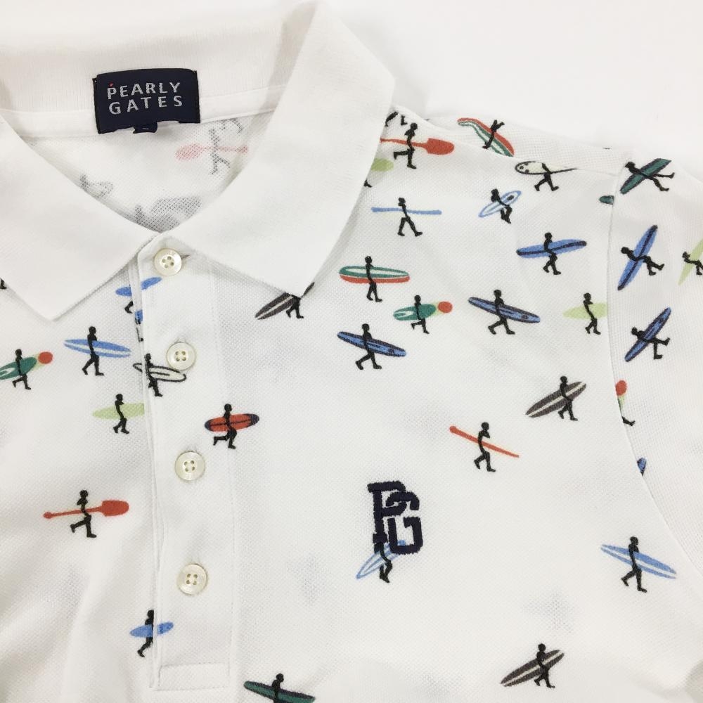 パーリーゲイツ 半袖ポロシャツ 白×ブルー 上部サーファー柄 メンズ 5(L) ゴルフウェア PEARLY GATES