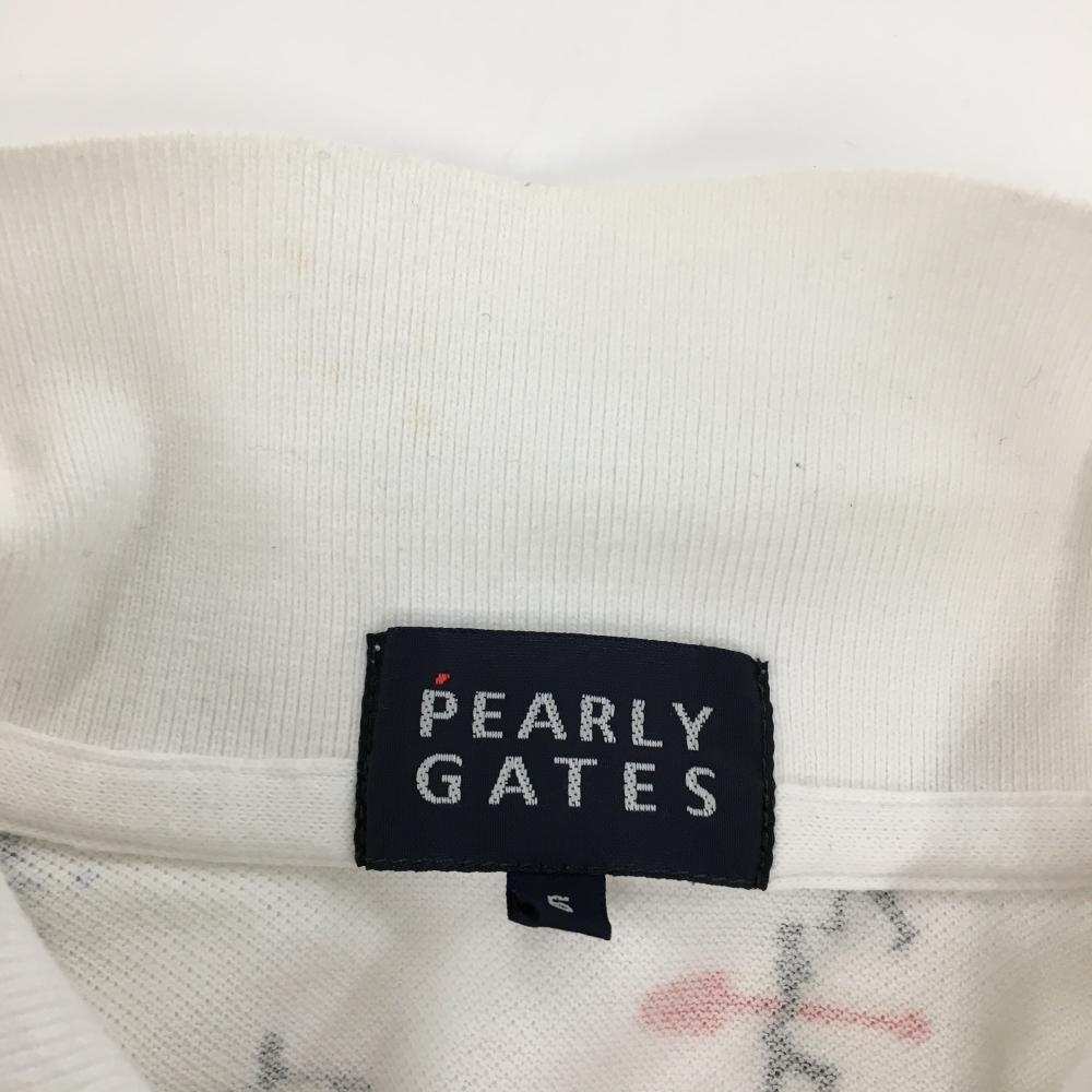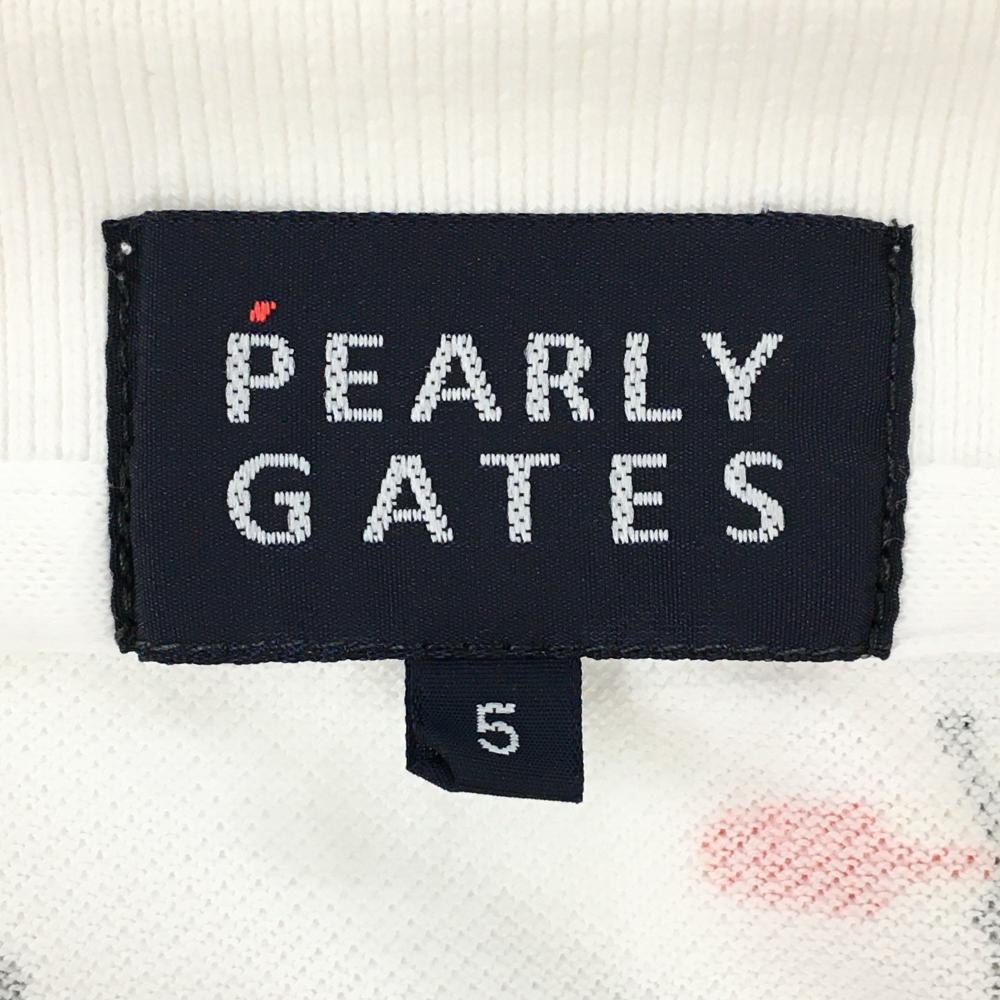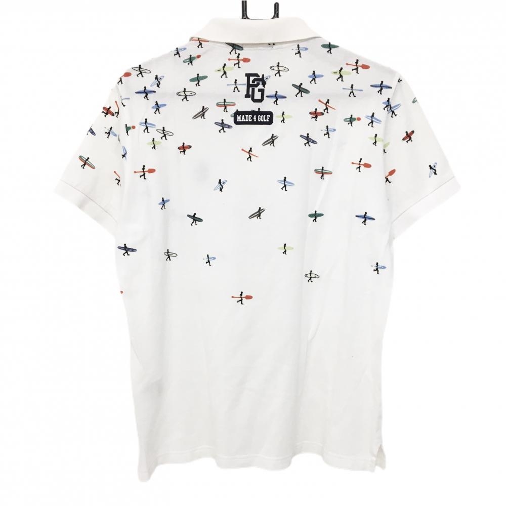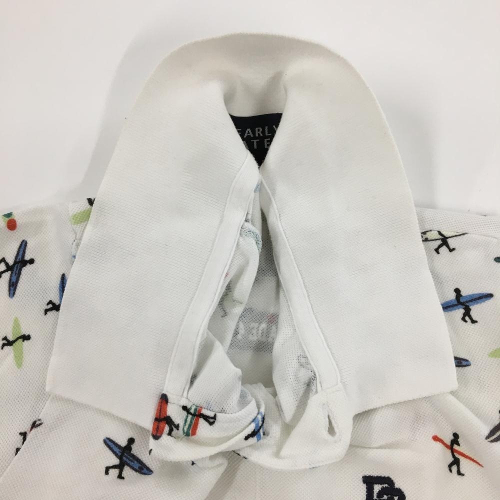 パーリーゲイツ 半袖ポロシャツ 白×ブルー 上部サーファー柄 メンズ 5(L) ゴルフウェア PEARLY GATES
