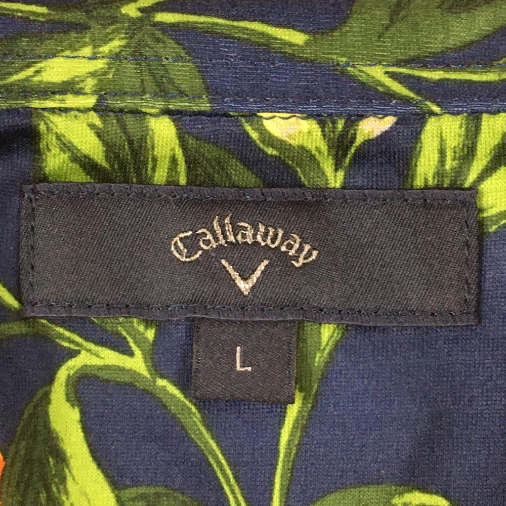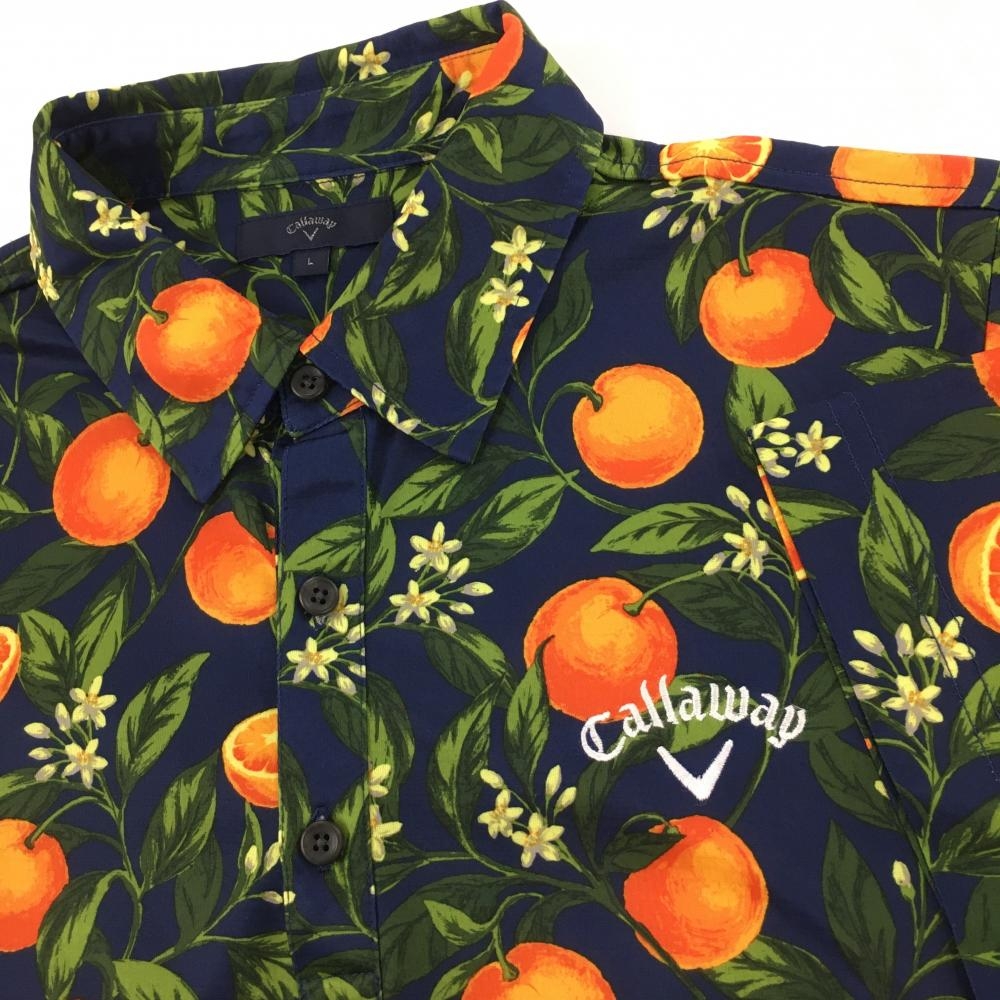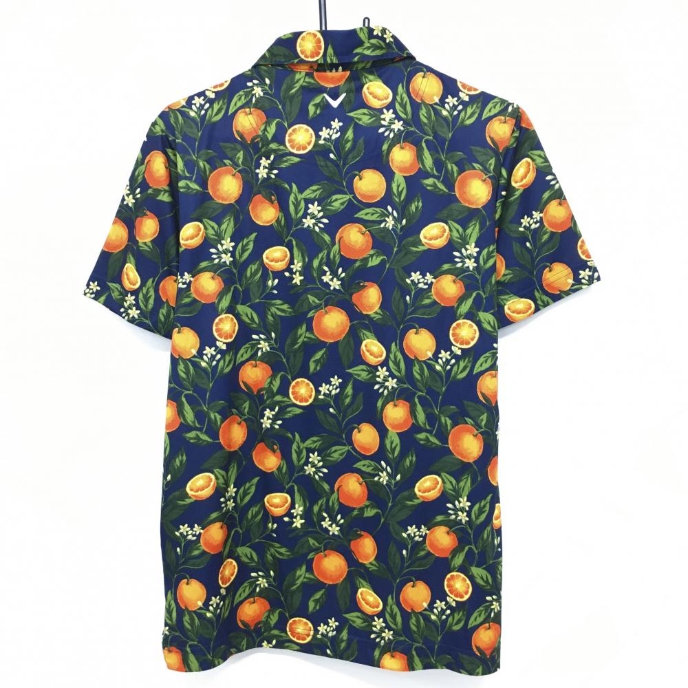 【超美品】キャロウェイ 半袖ポロシャツ ネイビー×オレンジ オレンジ総柄 ロゴ刺しゅう メンズ L ゴルフウェア Callaway