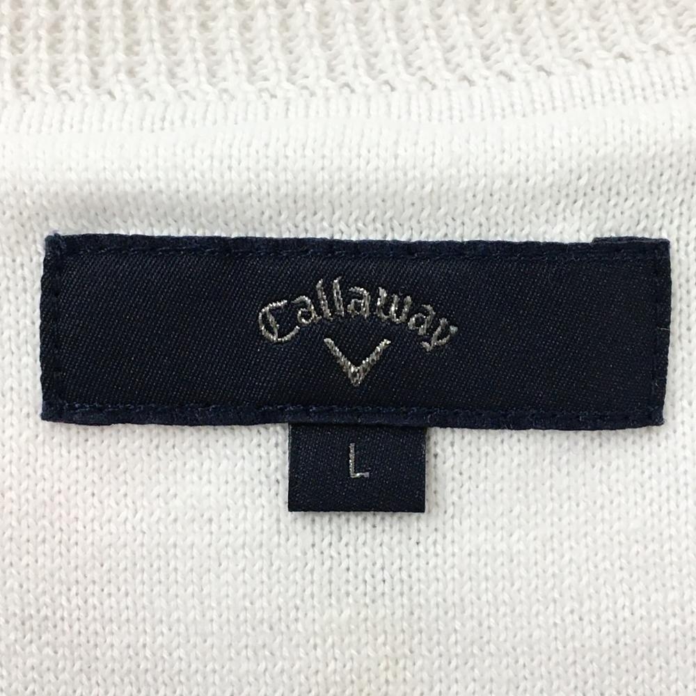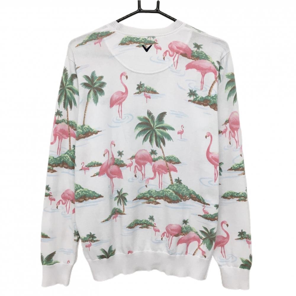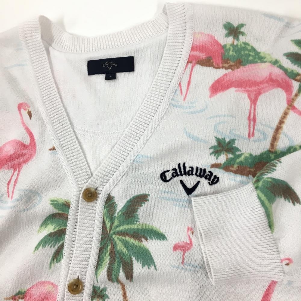 キャロウェイ カーディガン 白×ピンク×グリーン フラミンゴ総柄 コットン混 メンズ L ゴルフウェア Callaway