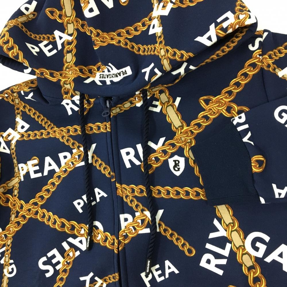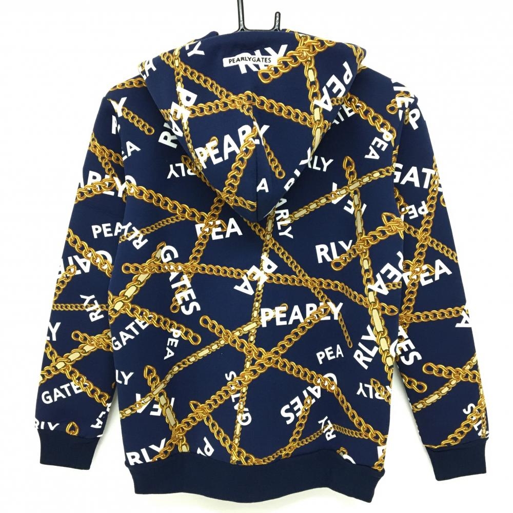 【新品】パーリーゲイツ ジップパーカー ネイビー×ゴールド チェーン柄 ロゴ刺しゅう レディース 0(S) ゴルフウェア PEARLY GATES