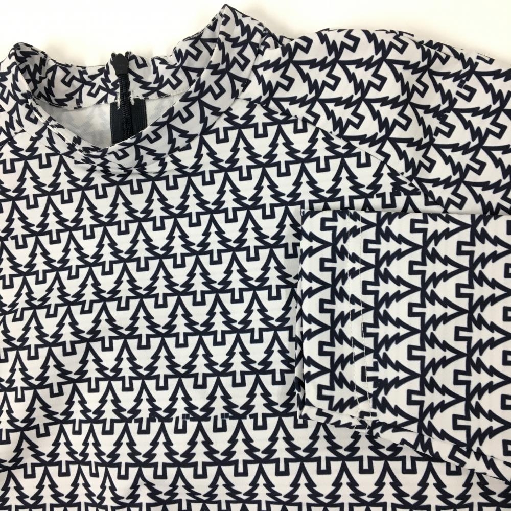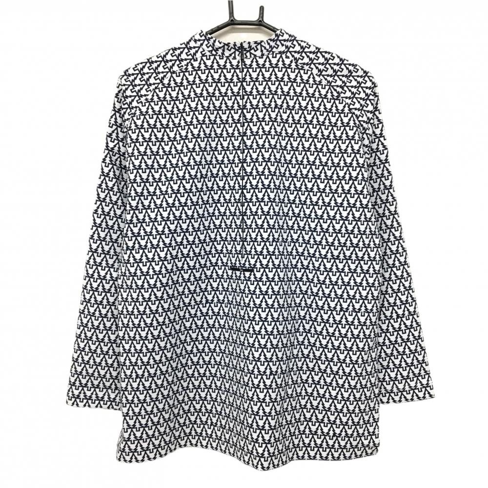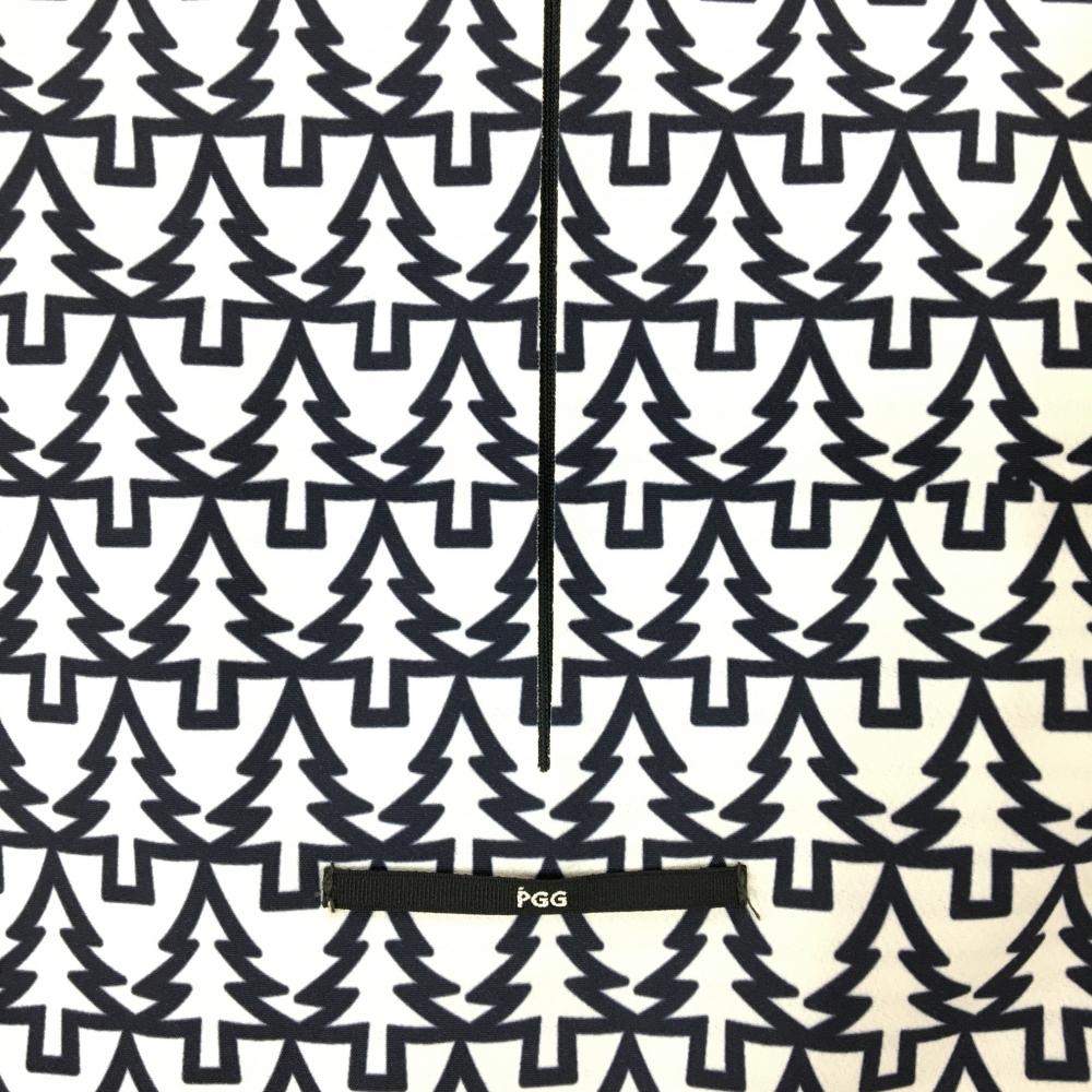 【新品】PGGパーリーゲイツ ハイネックプルオーバー 白×ネイビー ツリー柄 背面ハーフジップ レディース 0(S) ゴルフウェア PEARLY GATES