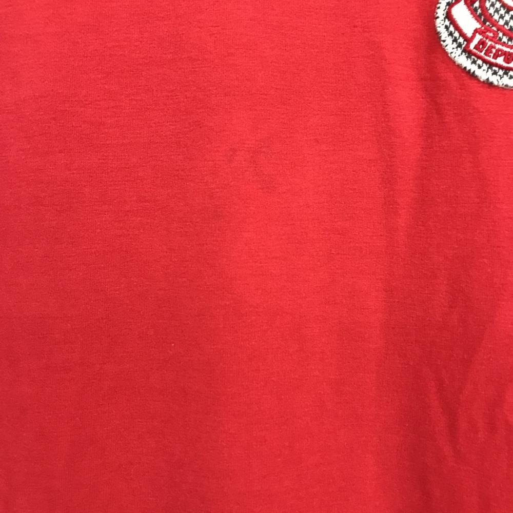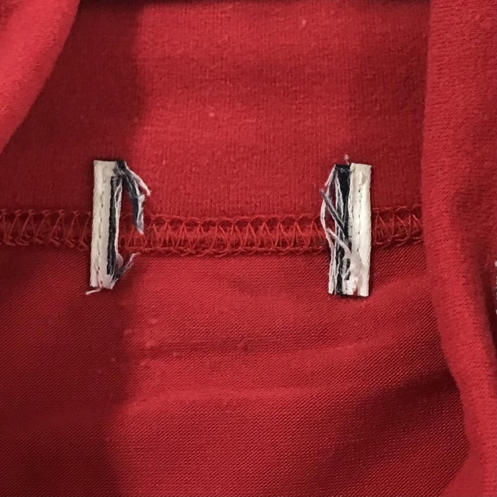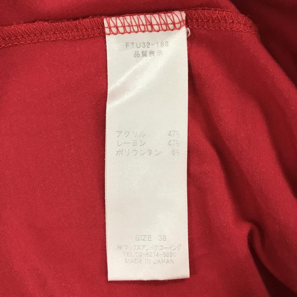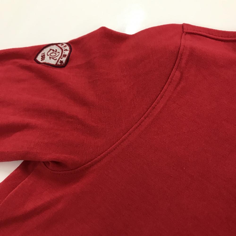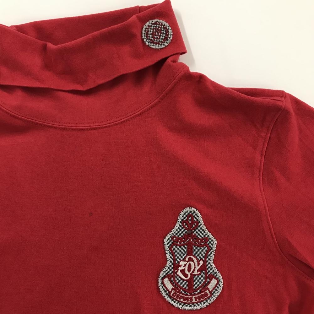 ゾーイ 長袖ハイネックシャツ レッド×グレー系 胸ロゴ 色褪せ、胸汚れ、ネック毛羽立ち少・跡あり レディース 38(M) ゴルフウェア ZOY