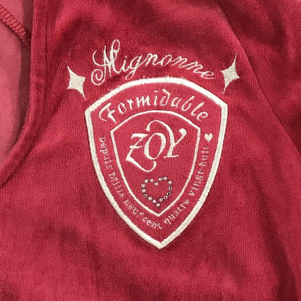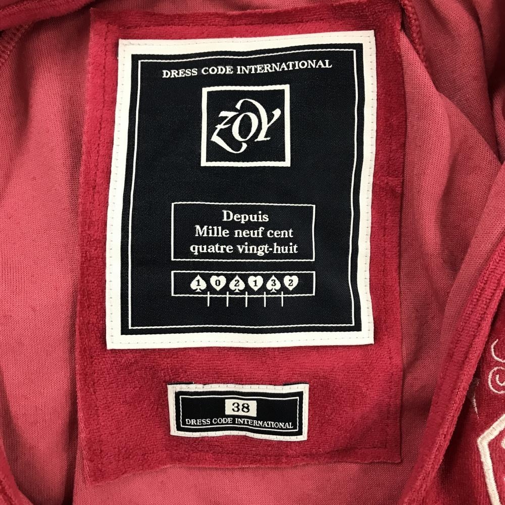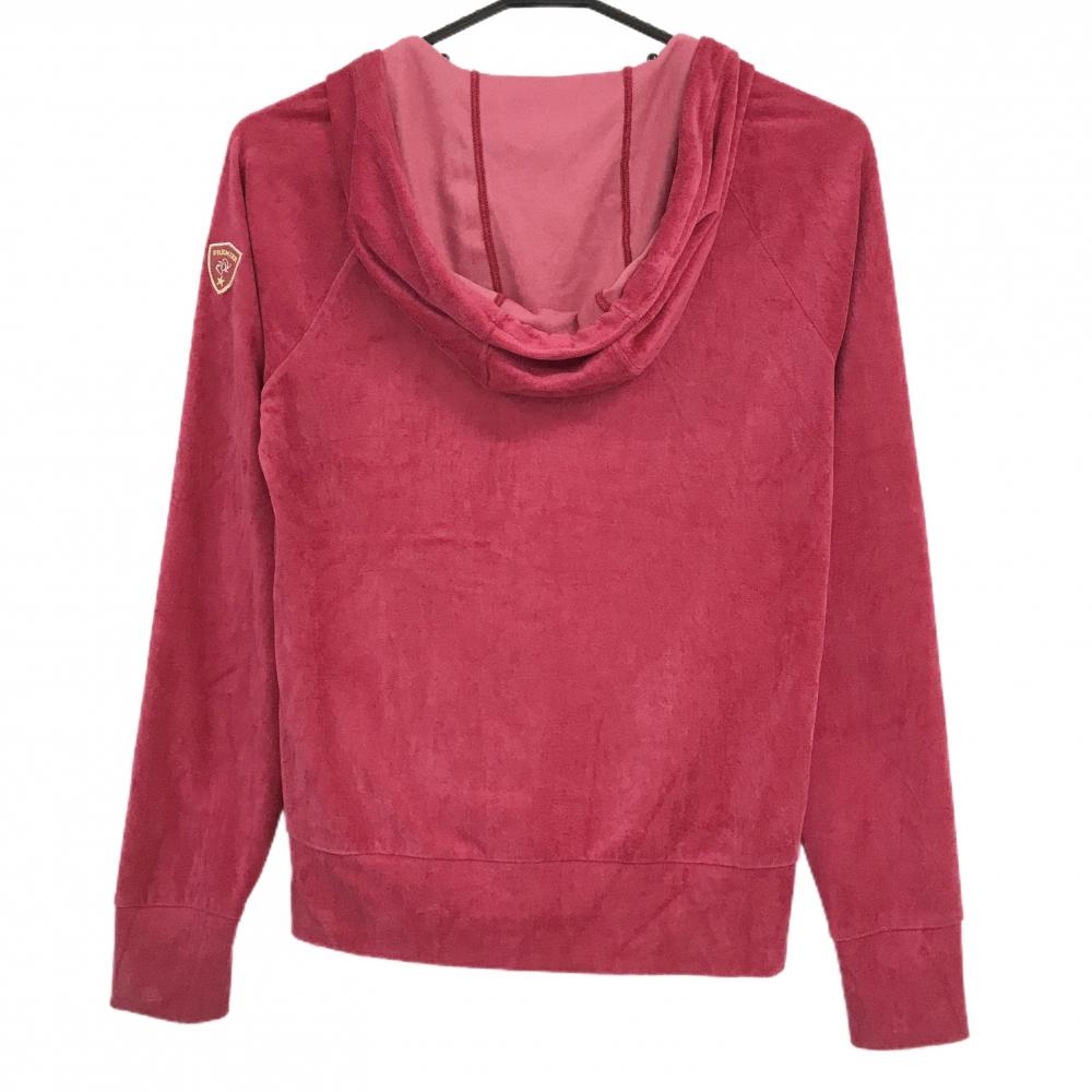 ゾーイ フード付き長袖シャツ レッド系 ベロア調 胸ロゴ レディース 38(M) ゴルフウェア ZOY