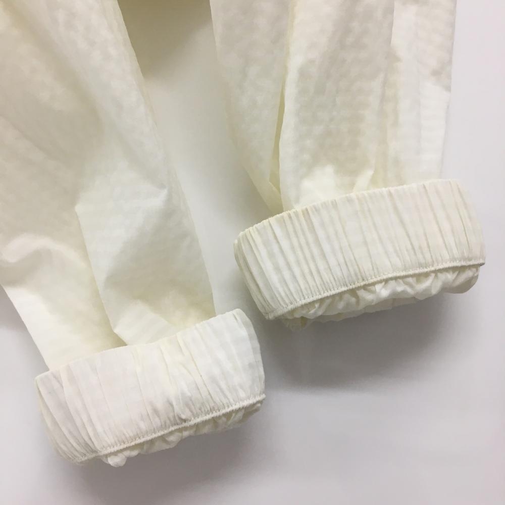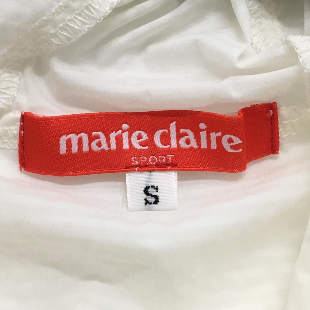 マリクレールスポール ナイロンパーカー 白 ボーダー 透け感 ドローコード レディース S ゴルフウェア marie claire