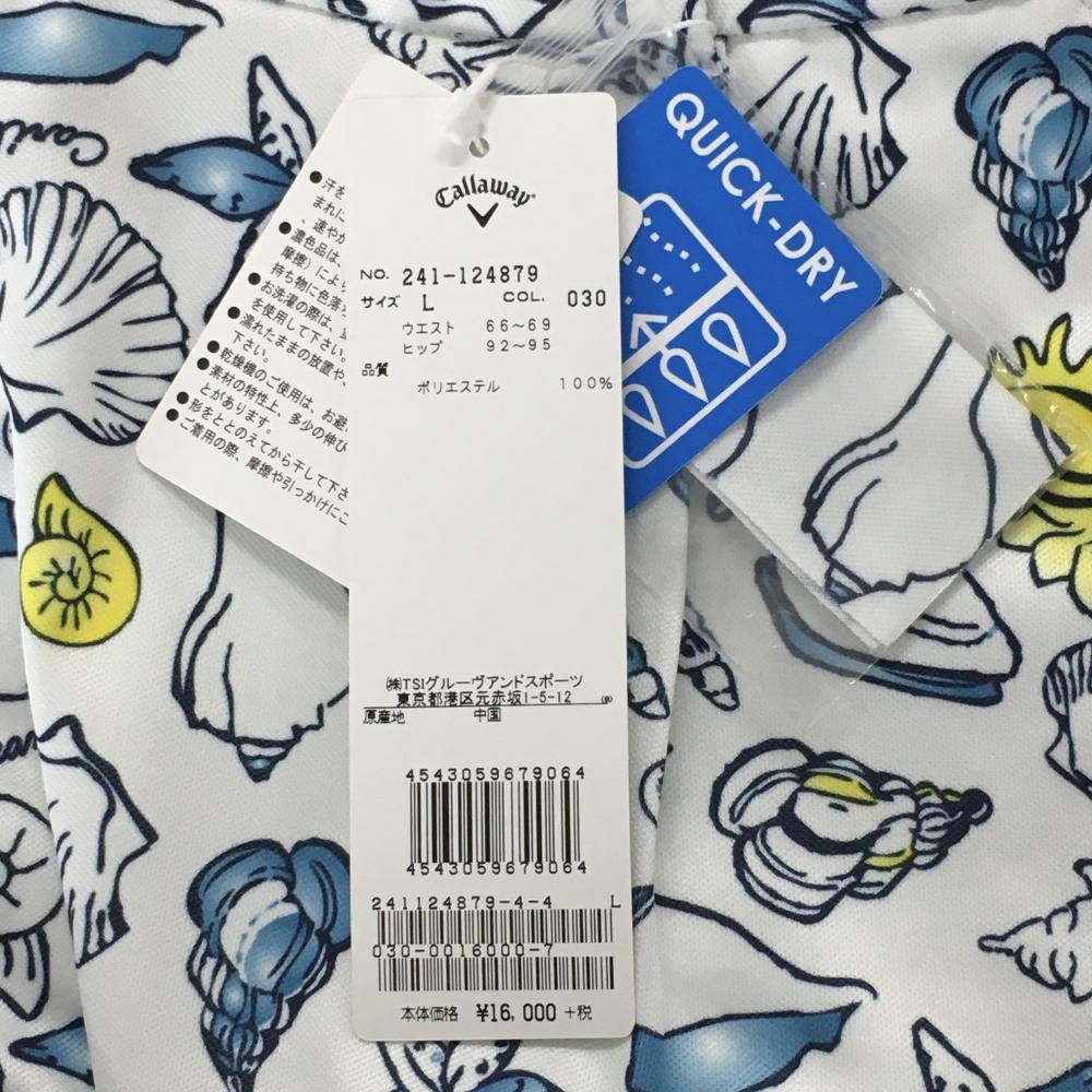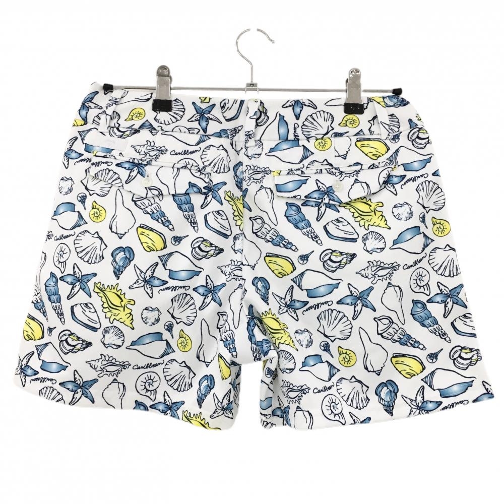 【新品】キャロウェイ ショートパンツ 白×ネイビー×イエロー シェル柄 貝殻 速乾 レディース L ゴルフウェア Callaway