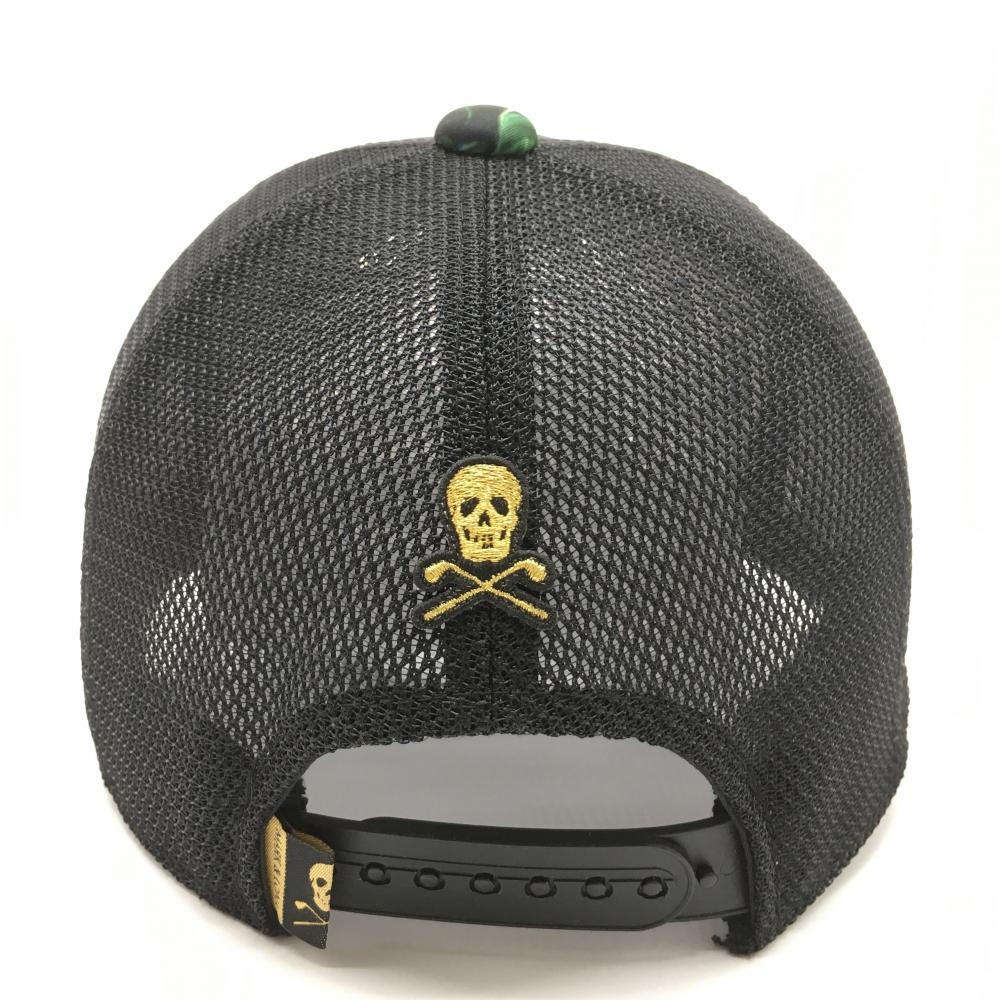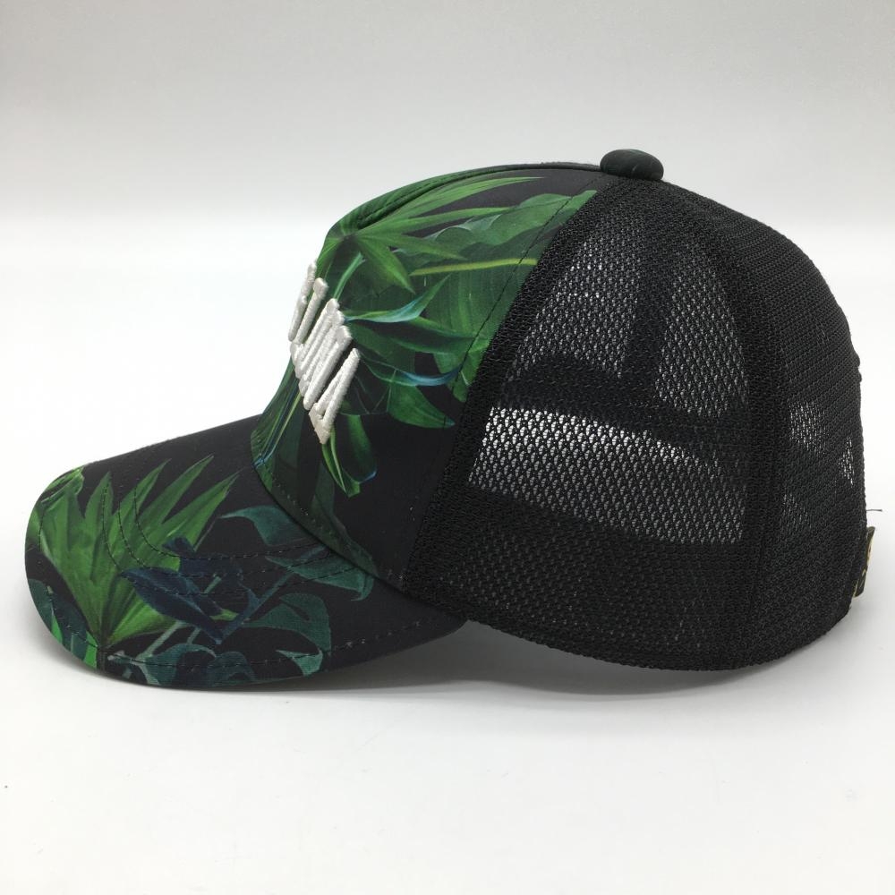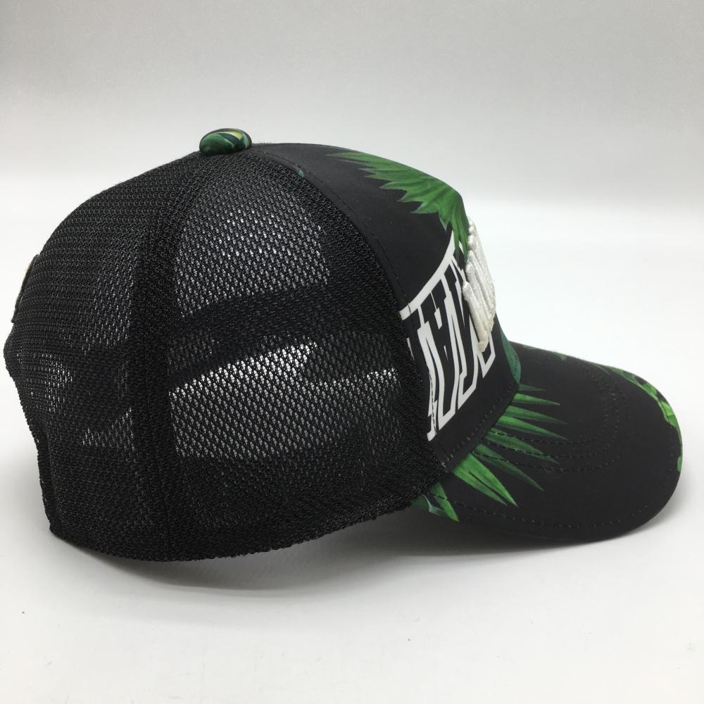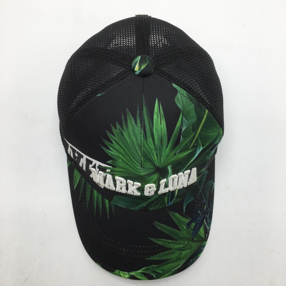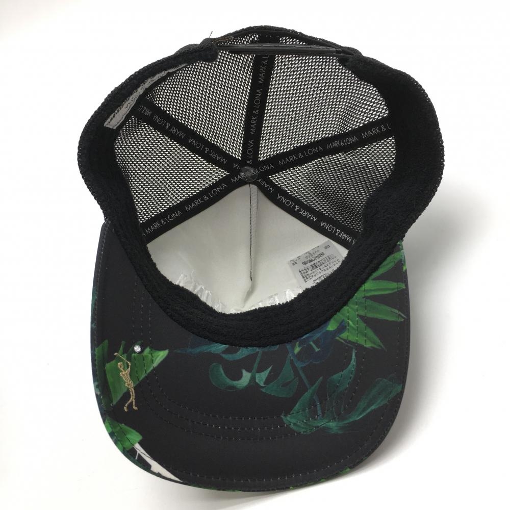 【超美品】マークアンドロナ メッシュキャップ 黒×グリーン リーフ柄 立体ロゴ S ゴルフウェア MARK&LONA
