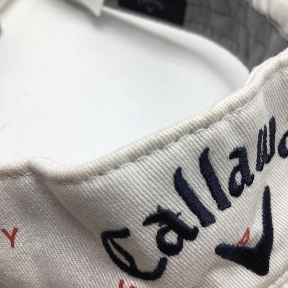 キャロウェイ サンバイザー 白×ネイビー ロゴ総柄 FR ゴルフウェア Callaway